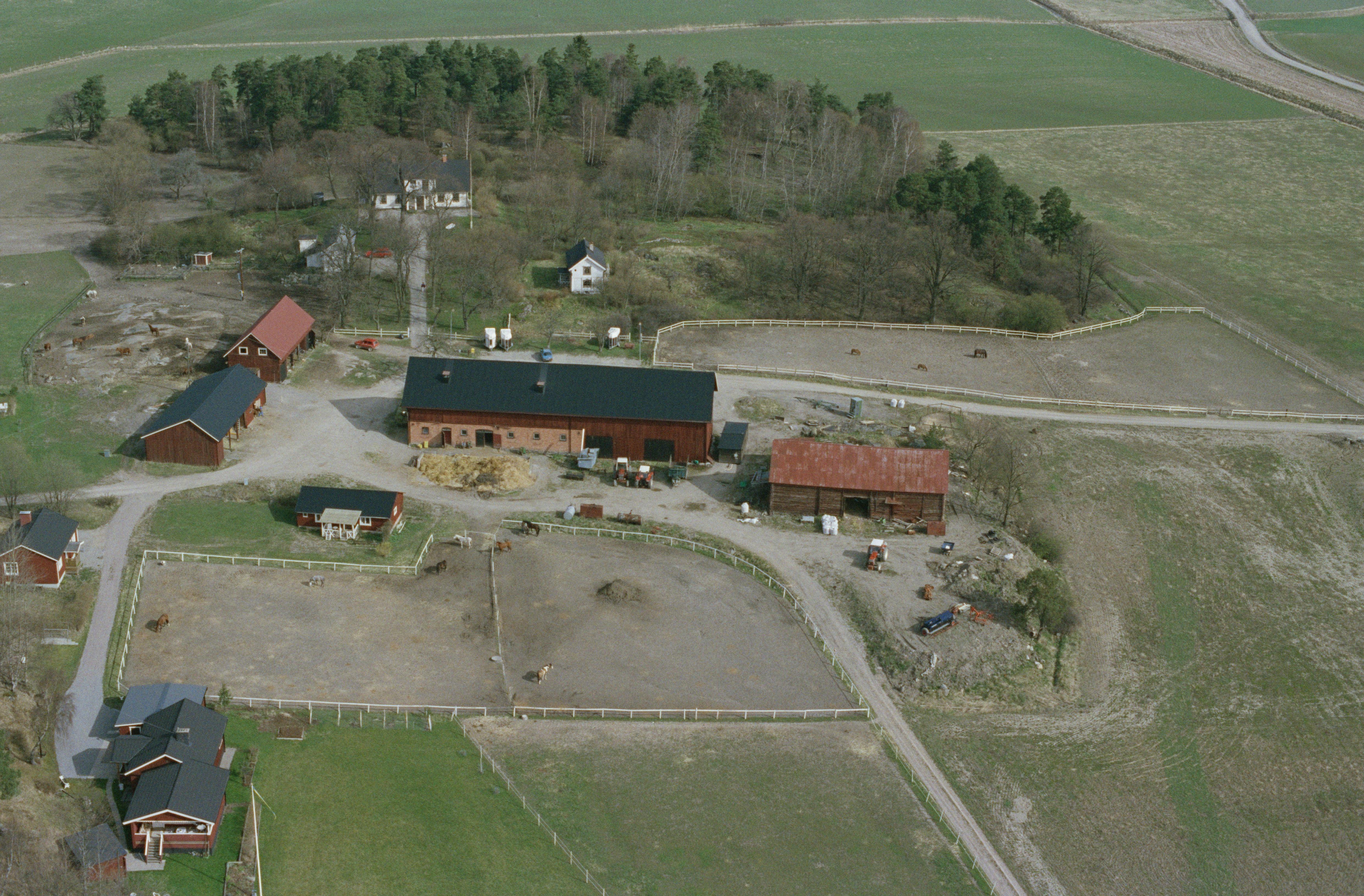 Beskrivning: Berga gård på Lovön. I bildens övre del Lunda gamla tomt med gravfält RAÄnr Lovö 34:1, bytomt Lovö 224 och färdväg Lovö 207 m.fl. Bilden är tagen mot (väderstreck): NV