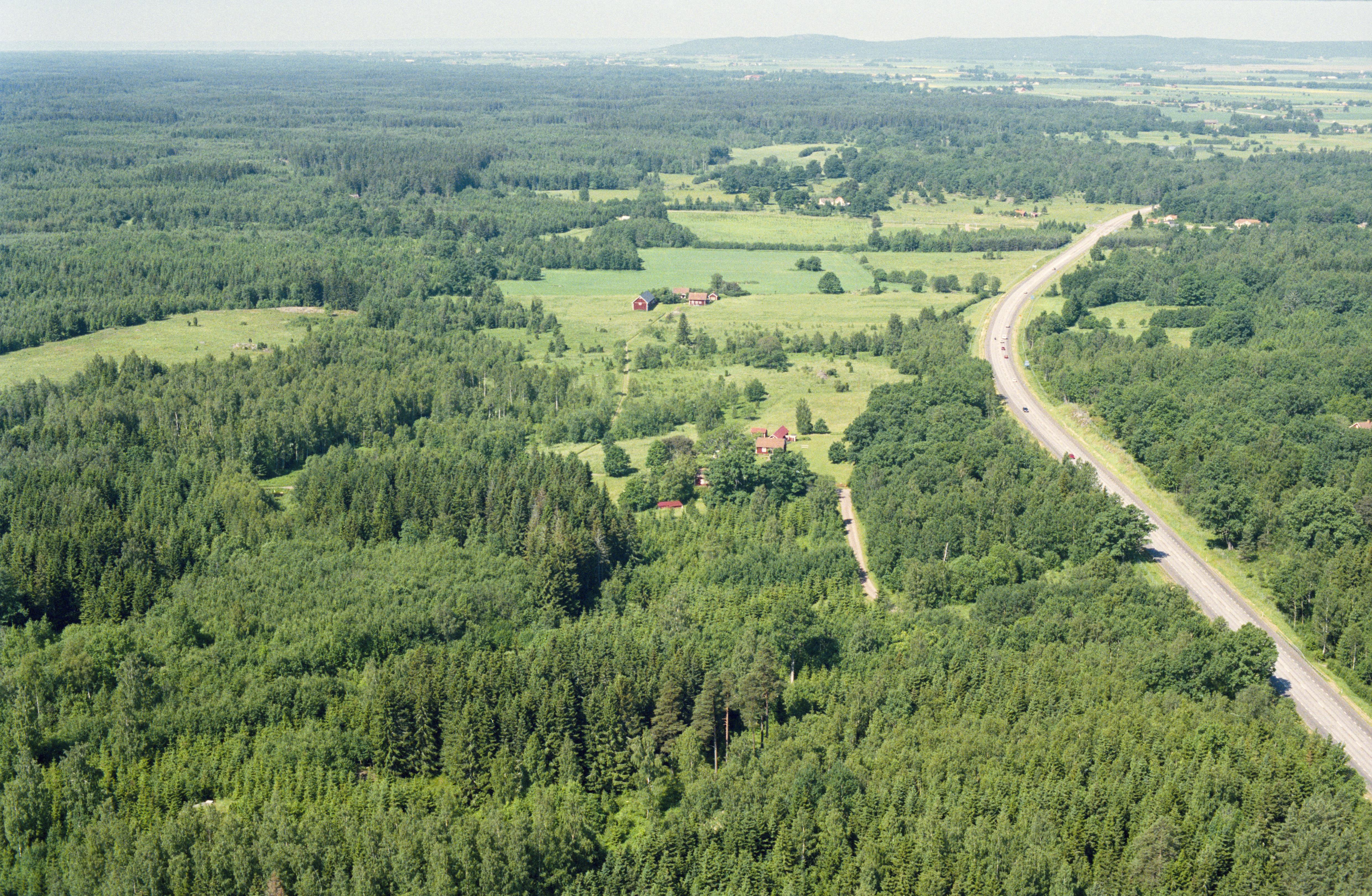 Beskrivning: Innan bygging av väg E4. Från Ekeberg mot Vasaborg och Vilan. Stensträngar, ristning och boplats RAÄnr Väderstad 219:1 och 219:2 vid bildens mitt. Bilden är tagen mot (väderstreck): V