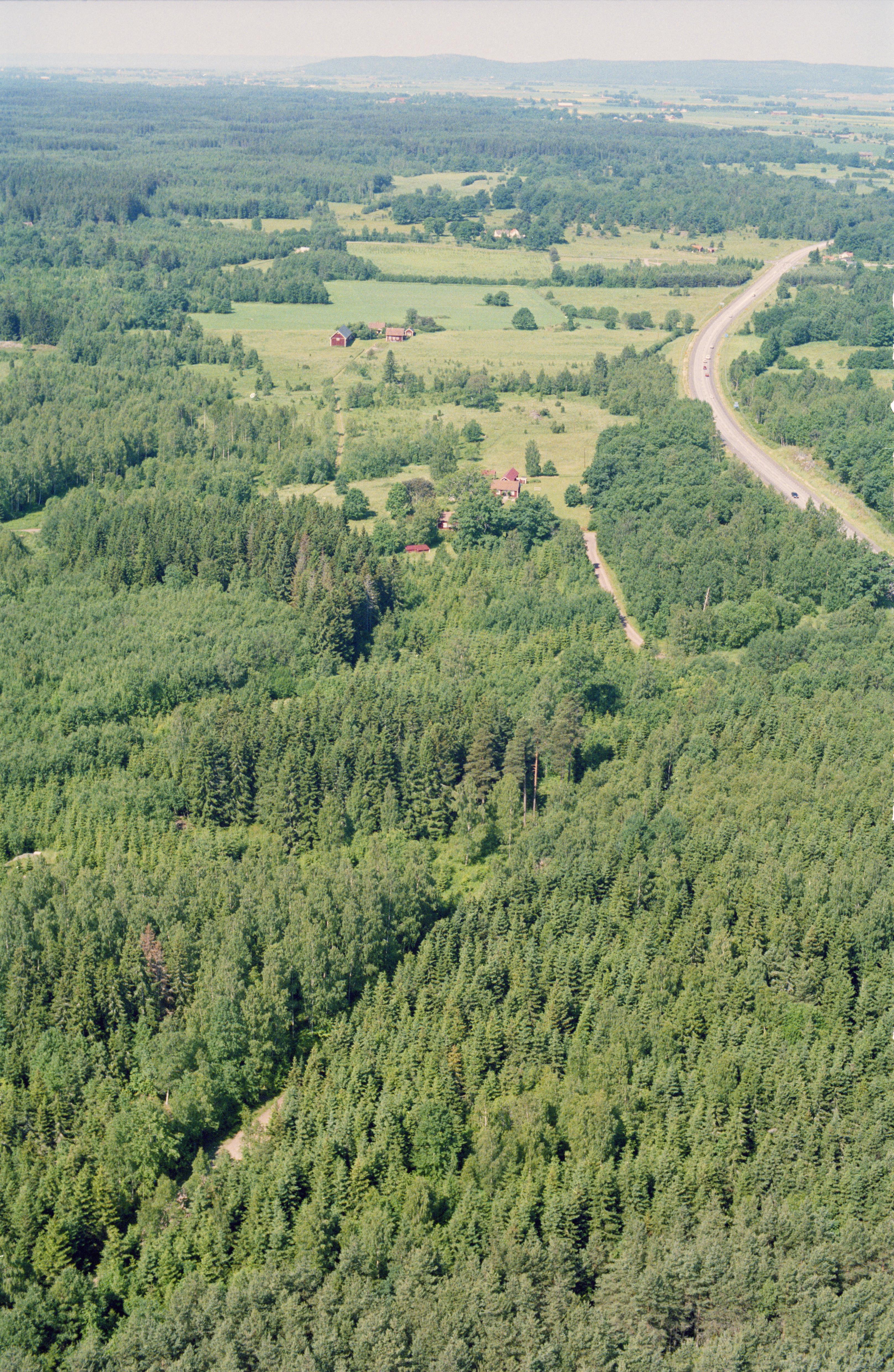 Beskrivning: Innan bygging av väg E4. Från Ekeberg mot Vasaborg och Vilan. Stensträngar, ristning och boplats RAÄnr Väderstad 219:1 och 219:2 vid bildens mitt. Bilden är tagen mot (väderstreck): V