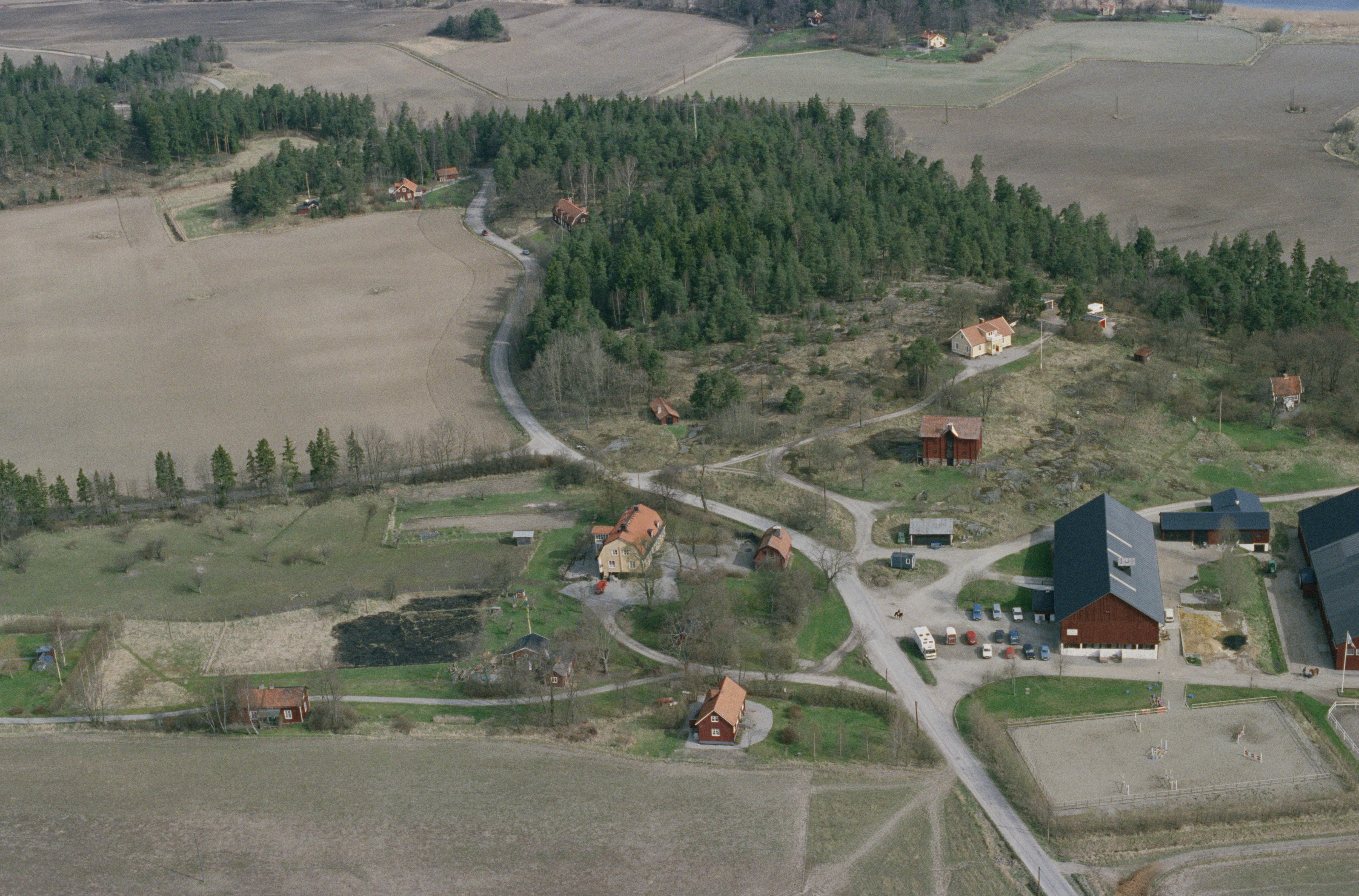 Beskrivning: Hogsta gård på Lovön. Vid gården gravfält RAÄnr Lovö 65:1 och bytomt Lovö 254 m.fl. Bilden är tagen mot (väderstreck): N