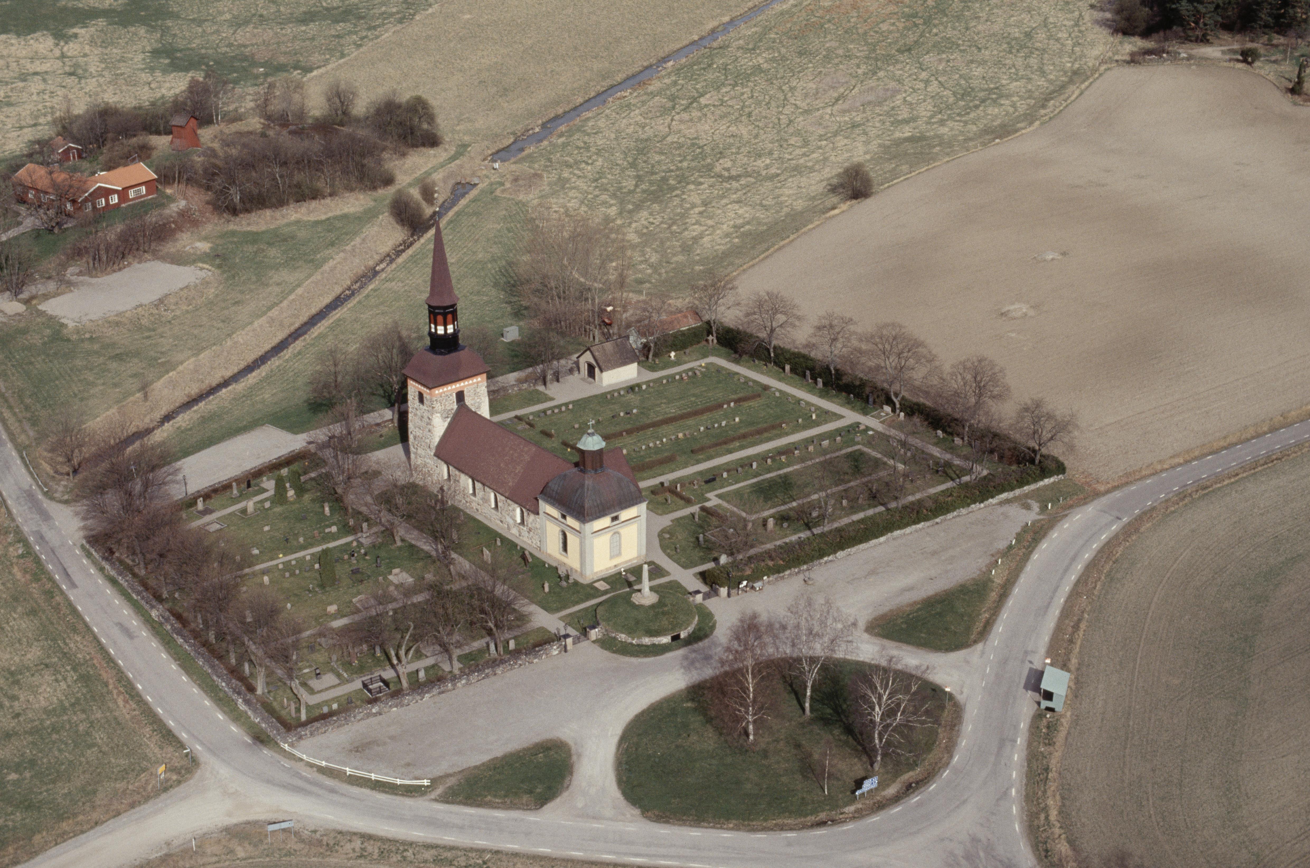 Beskrivning: Lovö kyrka och klockareboställe på Lovön. Bilden är tagen mot (väderstreck): VNV