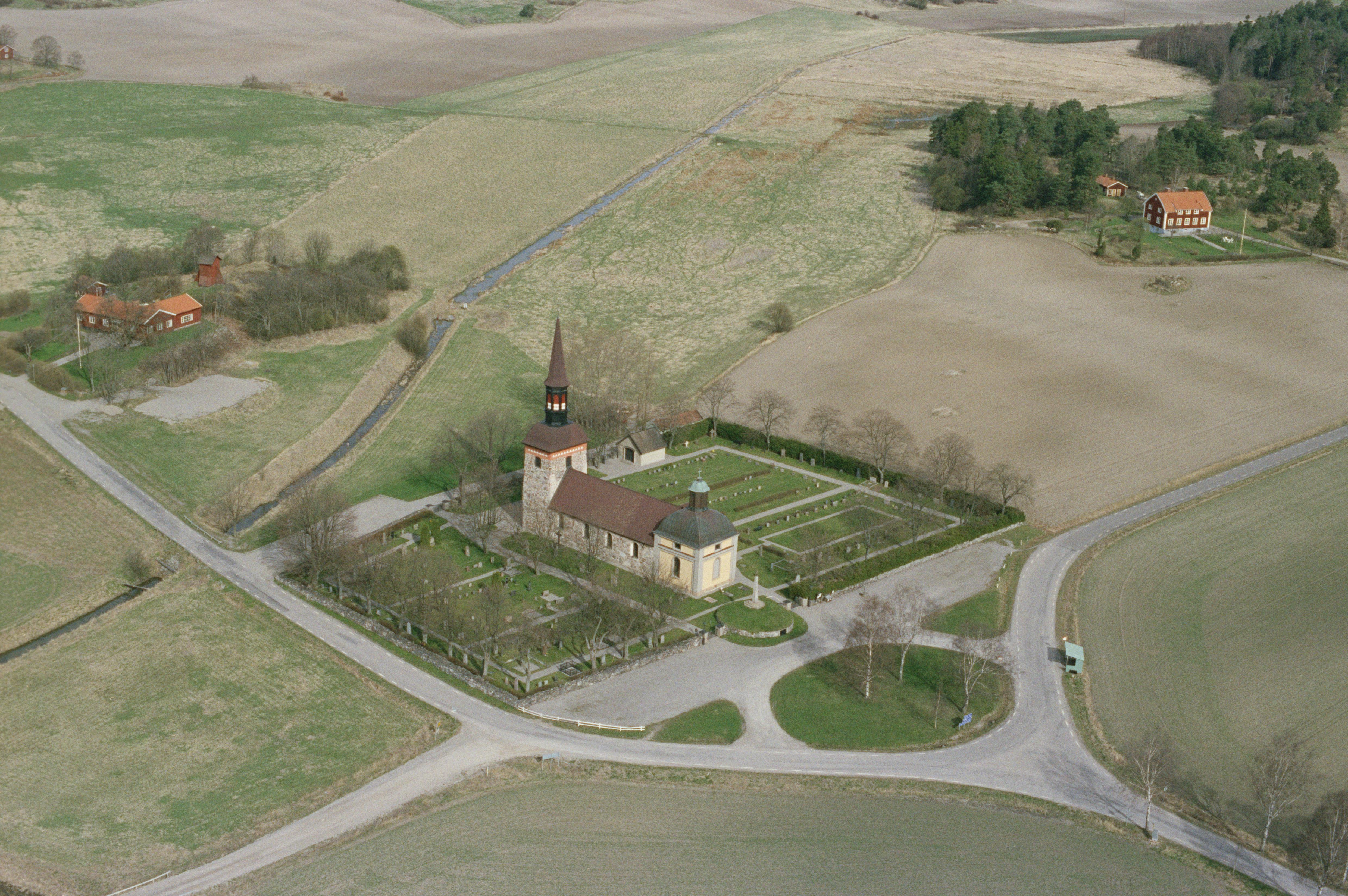 Beskrivning: Lovö klockareboställe och Lovö kyrka på Lovön. Bilden är tagen mot (väderstreck): NV