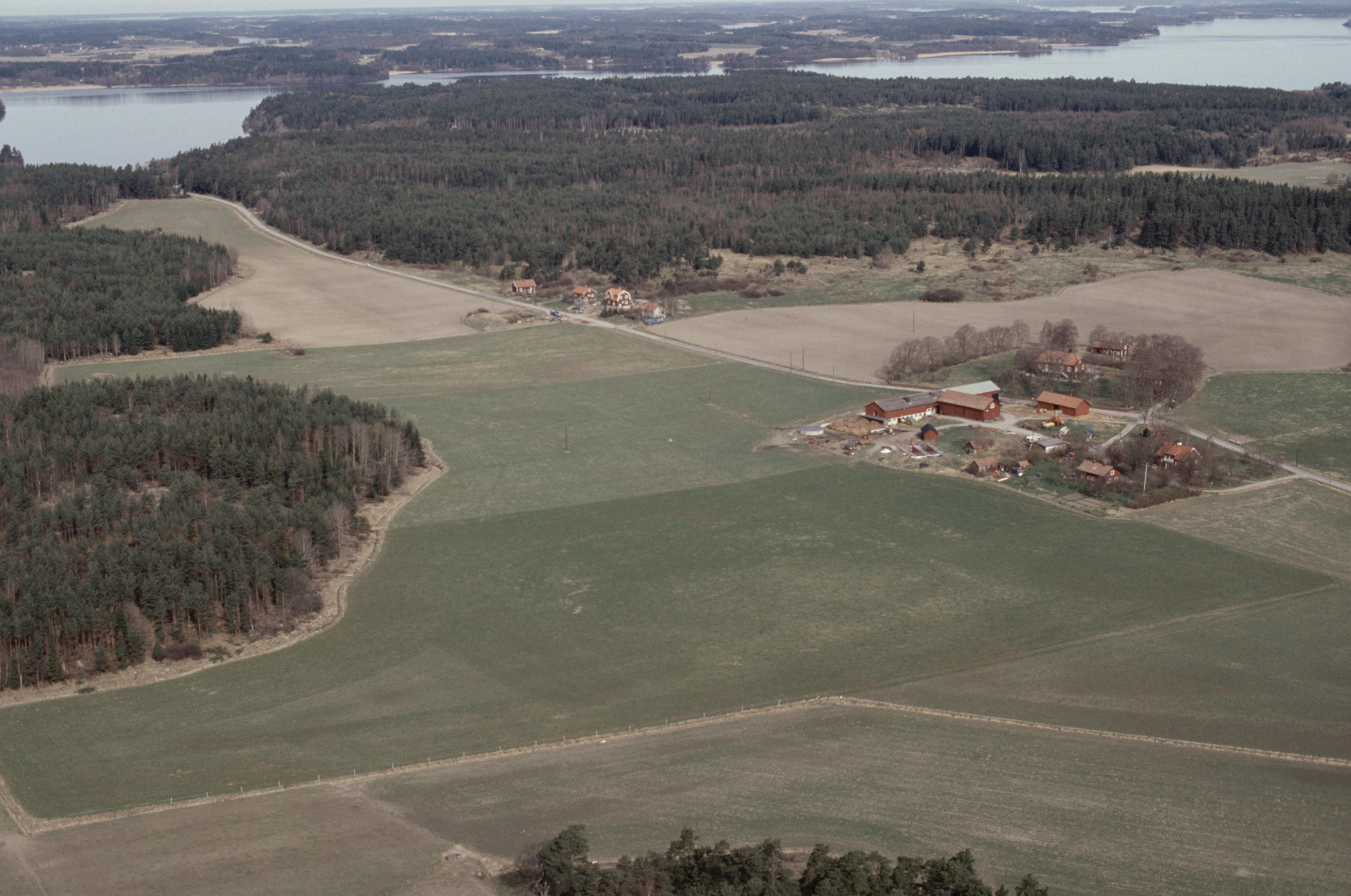 Beskrivning: Lovö prästgård på Lovön. Över bildens mitt gravfält RAÄnr Lovö 26:1. Bilden är tagen mot (väderstreck): VNV