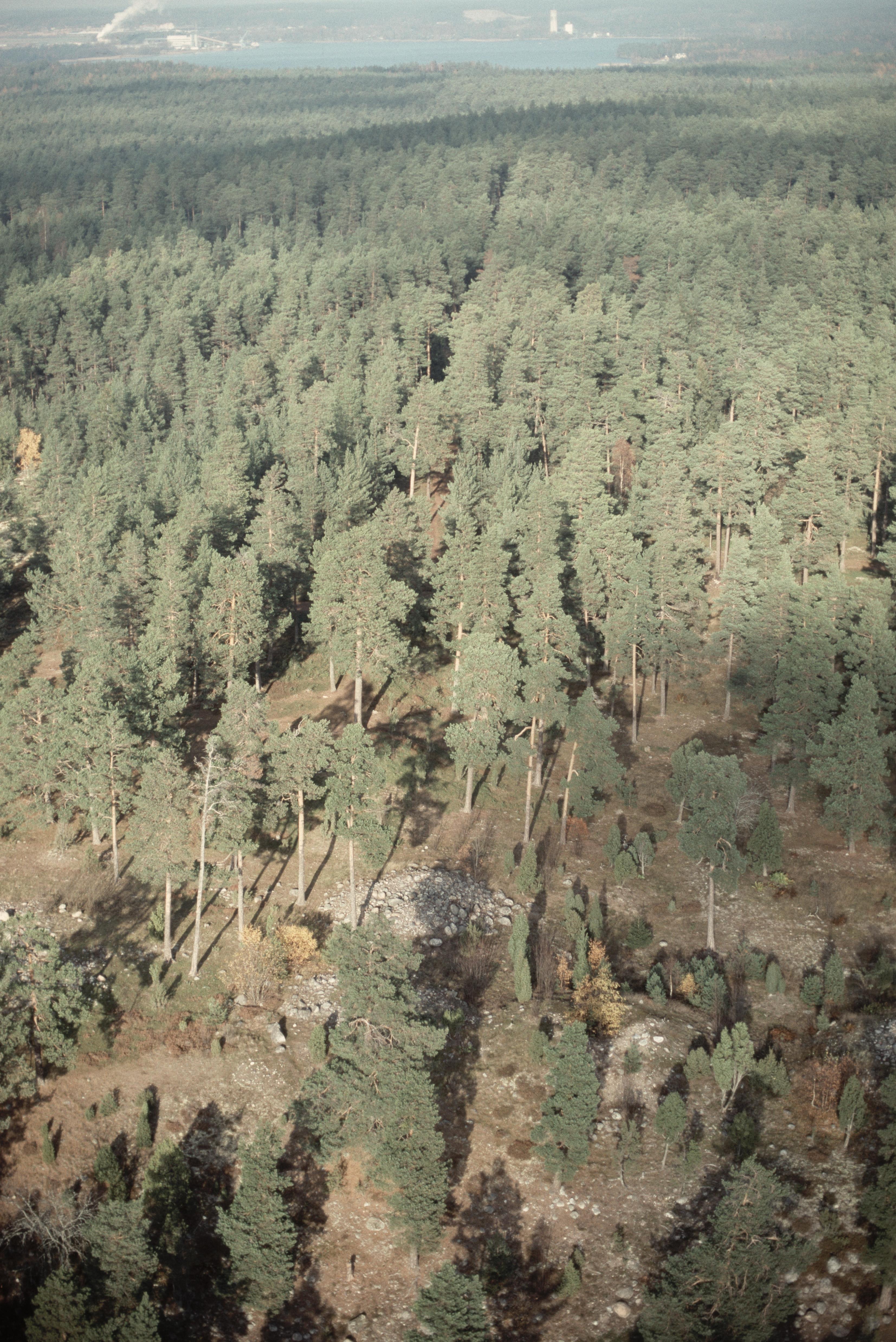 Beskrivning: Rösaringsåsen. I bildens nedre del gravfält / röse RAÄnr Låssa 23:1. I bildens övre del färdväg (Rösarings processionsväg) RAÄnr Låssa 85:1 mot Kalmarviken i Mälaren. Bilden är tagen mot (väderstreck): N