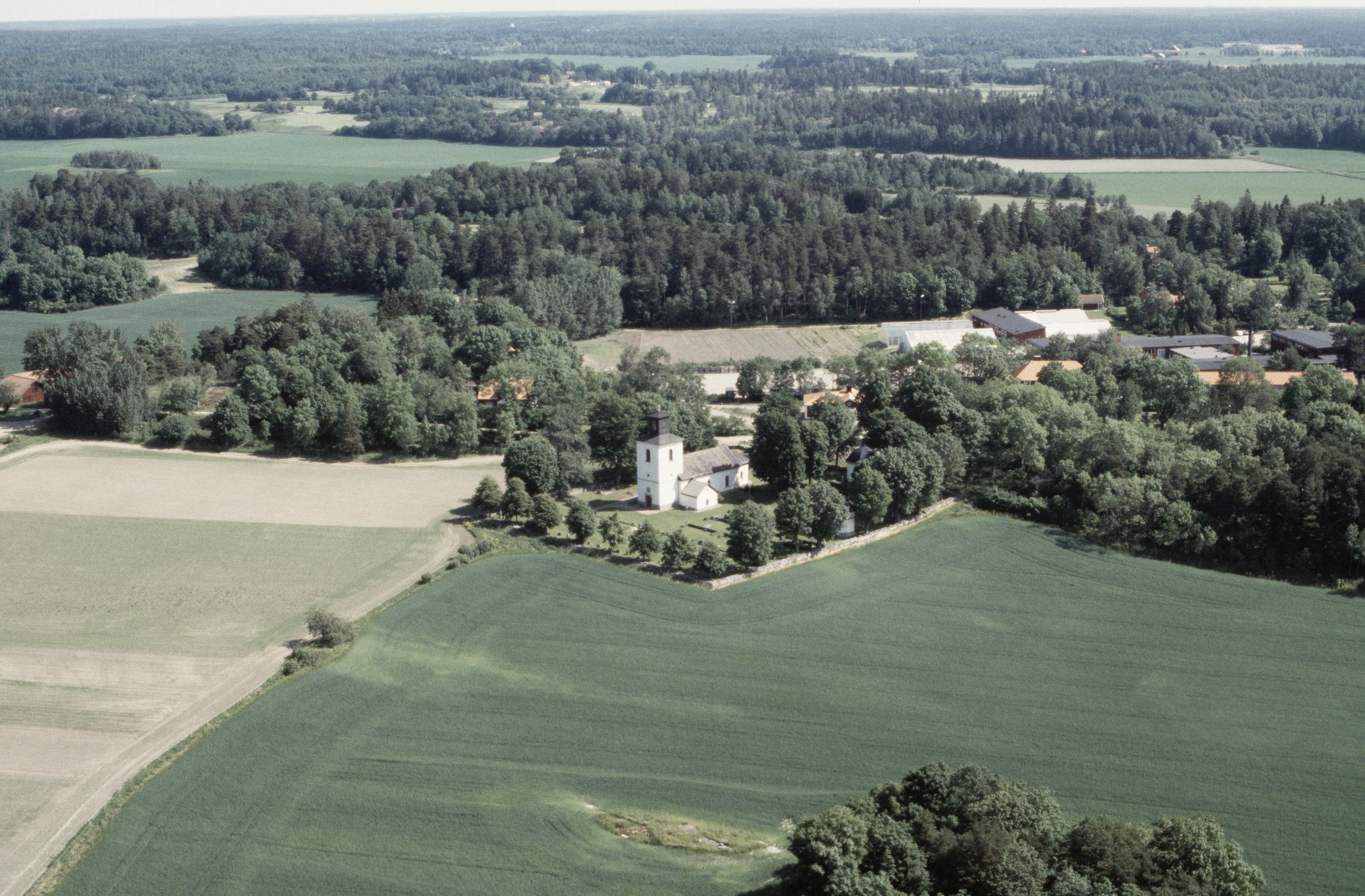 Beskrivning: Anmärkning (övrig): Riksintresse-nr/namn: AB34 - Låssa. Socken: Låssa. Motivering: Centralbygd i viktig korsning mellan norra mälarvägen och den forna vattenleden Birka-Uppsala, med unik fornlämningsmiljö på och kring ett åskrön, med den troliga kultplatsen Rösaring och gravfält som visar på en omfattande bosättning från bronsåldern till vikingatid. Det öppna, sammanhängande odlingslandskapet i de lägre landskapspartierna, med inslag av herrgårdar, bosättningsmönster som har kontinuitet ner i den yngre järnåldern och Låssa medeltidskyrka, som uppfördes som patronatskyrka till Säbyholms gård. (Sockencentrum). - Uttryck för riksintresset: Rösaring med stora gravrösen, labyrint och en stenkantad s.k. processionsv(…) Texten i detta fält har förkortats vid migrering till e-arkivet. Se filbilagan extra.xml för fullständig information under note_archivist. Beskrivning: Låssa kyrka. Bilden är tagen mot (väderstreck): NO Fotosyfte: Flygbildsdokumentation