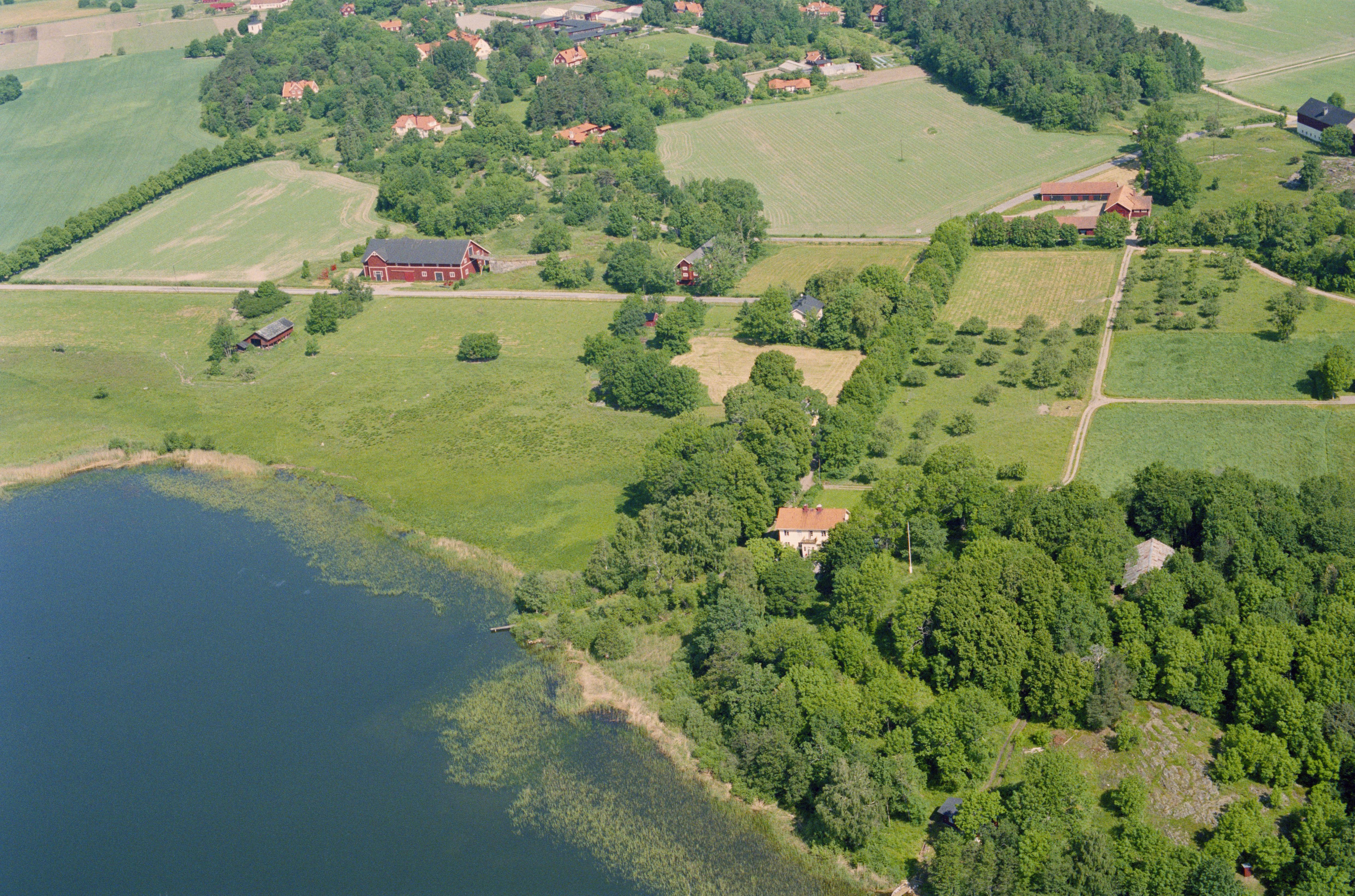 Beskrivning: Säbyholms gård vid Säbyholmsviken i Mälaren. Vid gården färdvägar RAÄnr Låssa 126 och 130. Bilden är tagen mot (väderstreck): NV
