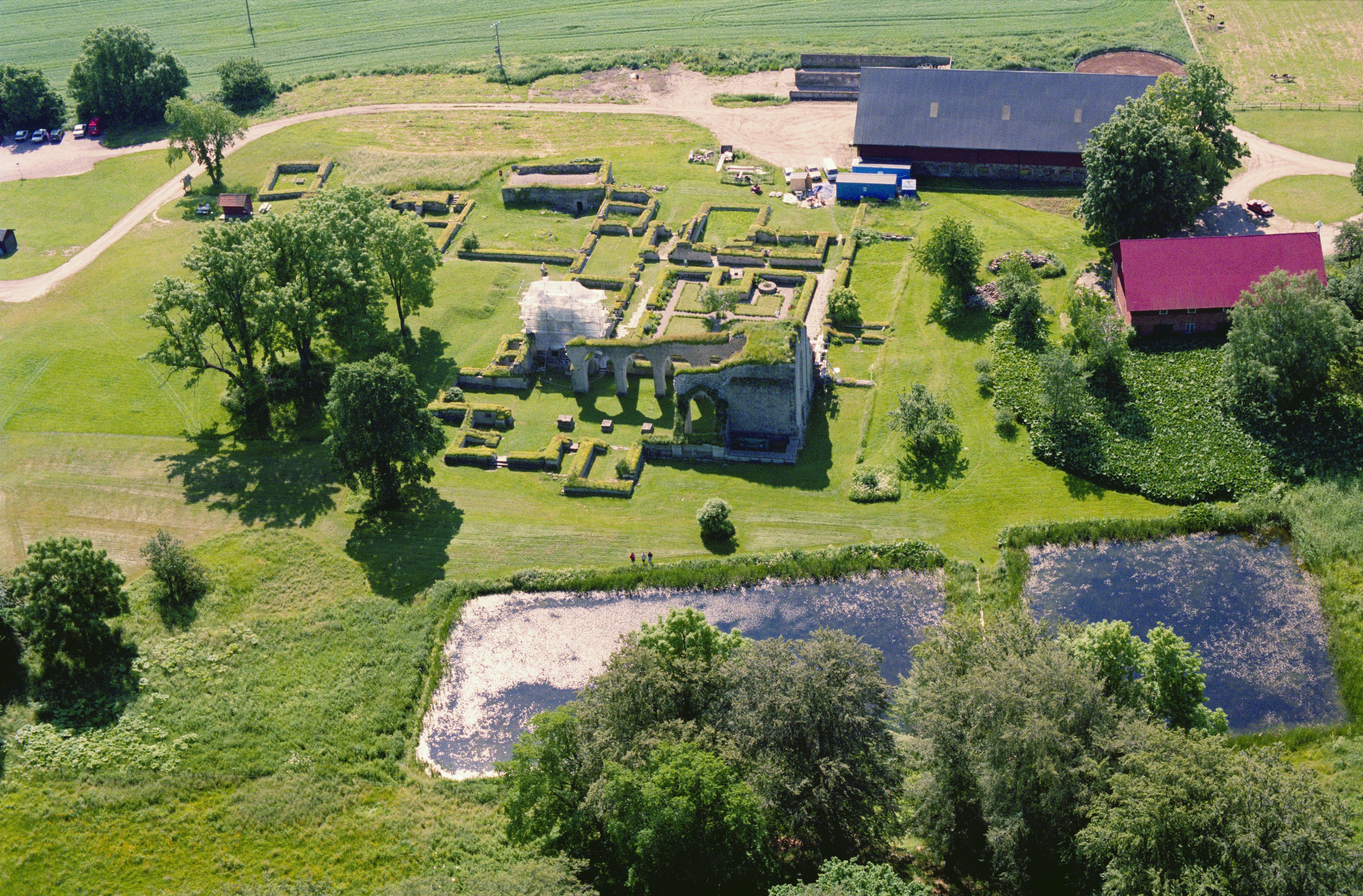 Beskrivning: Alvastra kloster. Alvastra klosterruin RAÄnr Västra Tollstad 1:1. Bilden är tagen mot (väderstreck): S