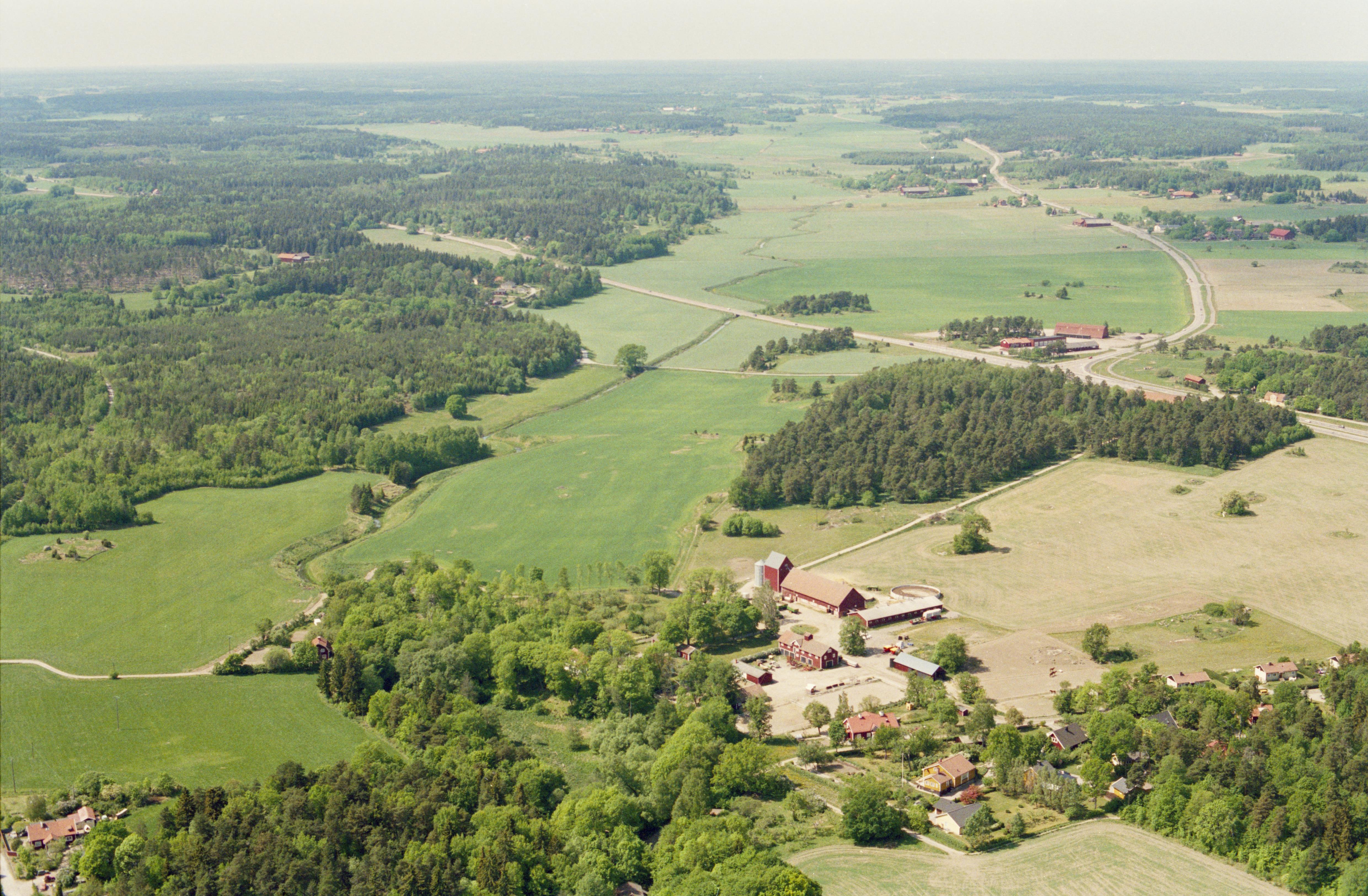 Beskrivning: Kvarnbo gård. Hågaåns dalgång i östra delen av Läby vad vid gränsen mot Uppsala socken (i bildens vänstra del). Vid bildens mitt vadställe, färdväg och gravfält RAÄnr Läby 8:1-4, Läbybron RAÄnr Läby 7:1-2 och boplats RAÄnr Läby 21:1. Över bildens mitt Vadbacka med hög, färdväg hålväg i Läby vad RAÄnr Läby 18:1-2. Bilden är tagen mot (väderstreck): VSV