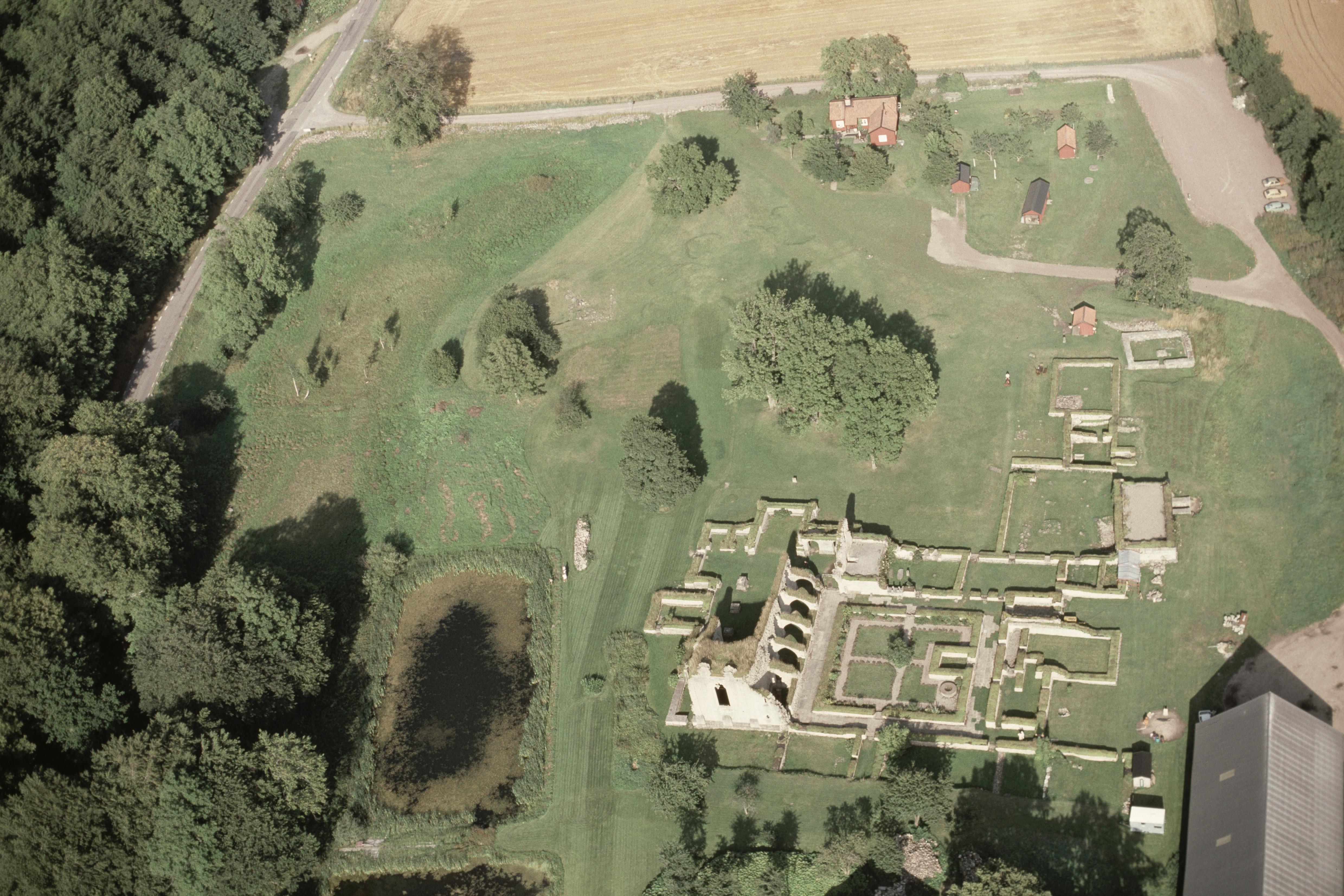 Beskrivning: Alvastra kloster. Alvastra klosterruin RAÄnr Västra Tollstad 1:1. Bilden är tagen mot (väderstreck): NO