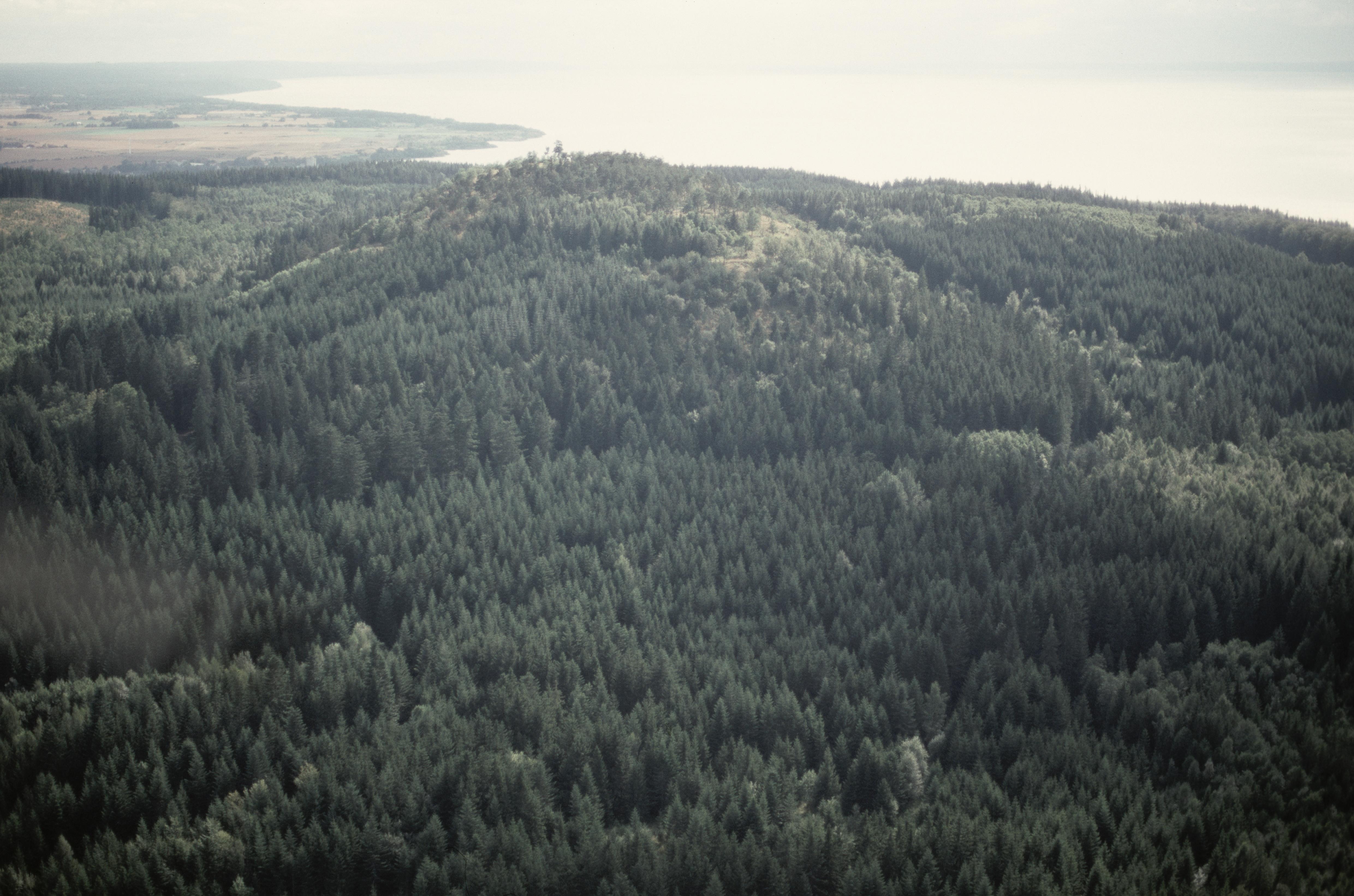 Beskrivning: I bildens övre del fornborg RAÄnr Västra Tollstad 17:1 på Hjässan, Omberg. Bilden är tagen mot (väderstreck): SV