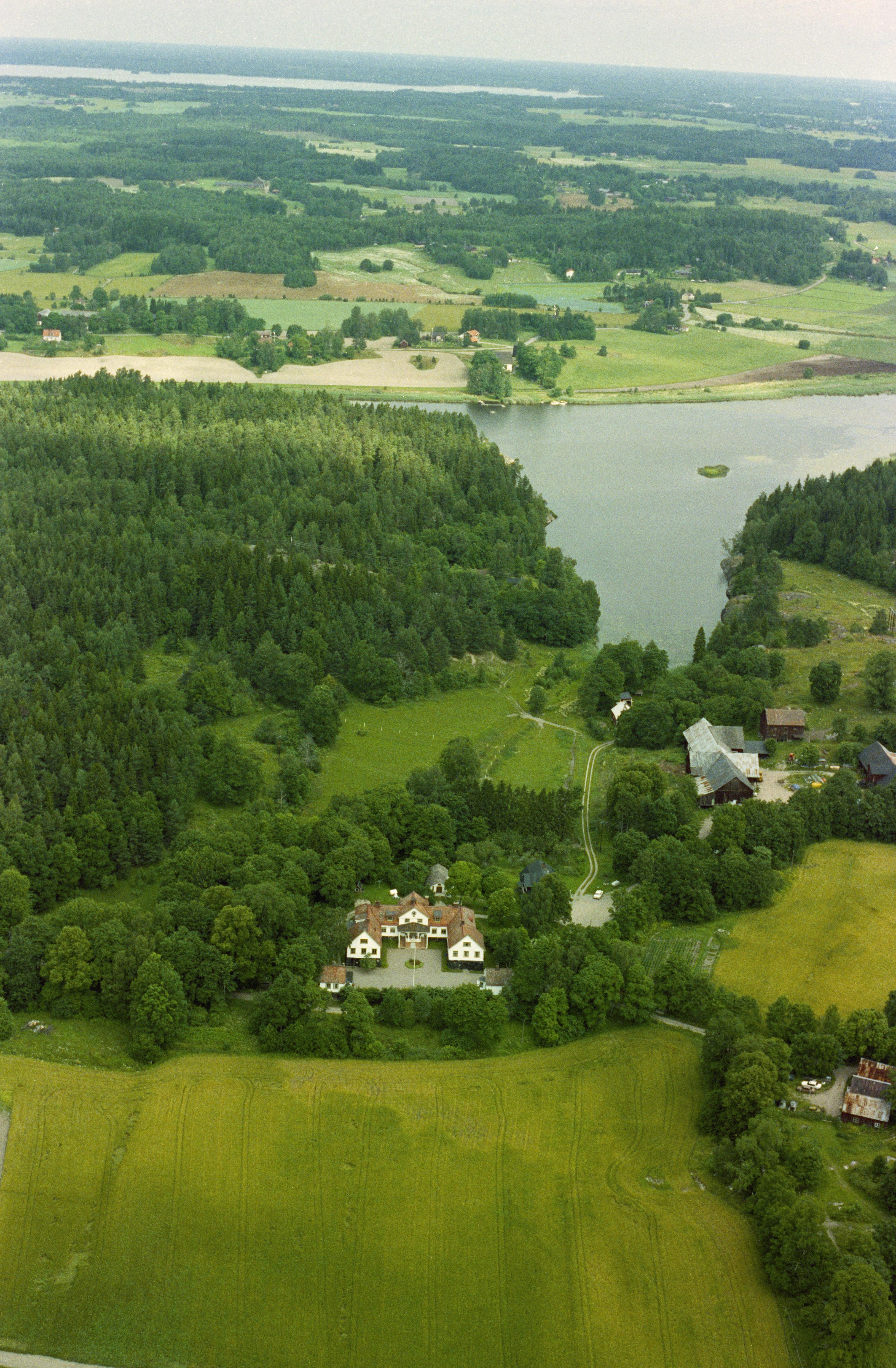 Beskrivning: Degarö herrgård (skrivs även Degerö) vid Malstasjön. I bildens övre del Malsta kyrka i Malstaby. Bilden är tagen mot (väderstreck): N