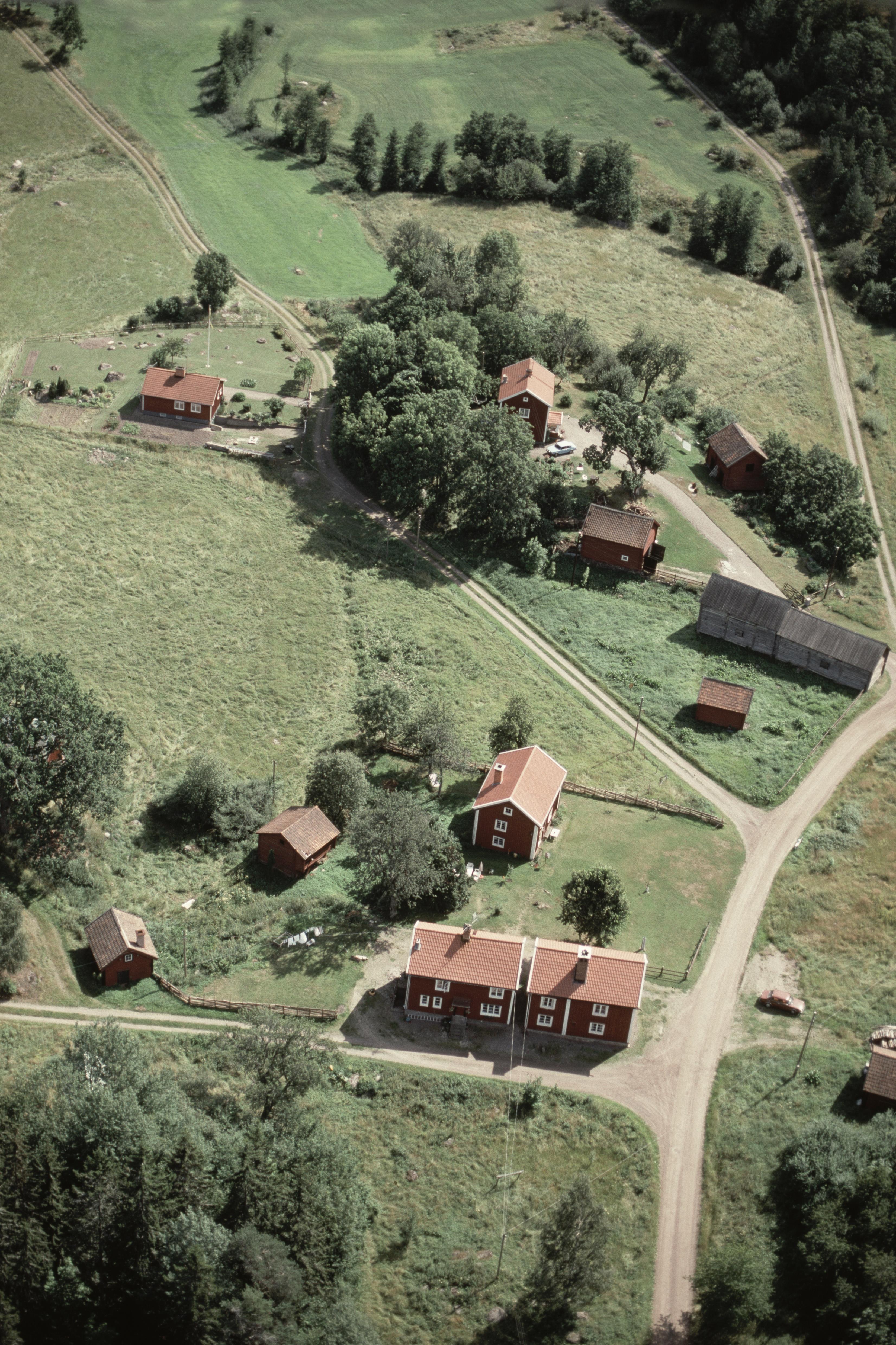 Beskrivning: Långserums by. Logebyggnad RAÄnr Yxnerum 88:1 till höger om bildens mitt. Bilden är tagen mot (väderstreck): SSO