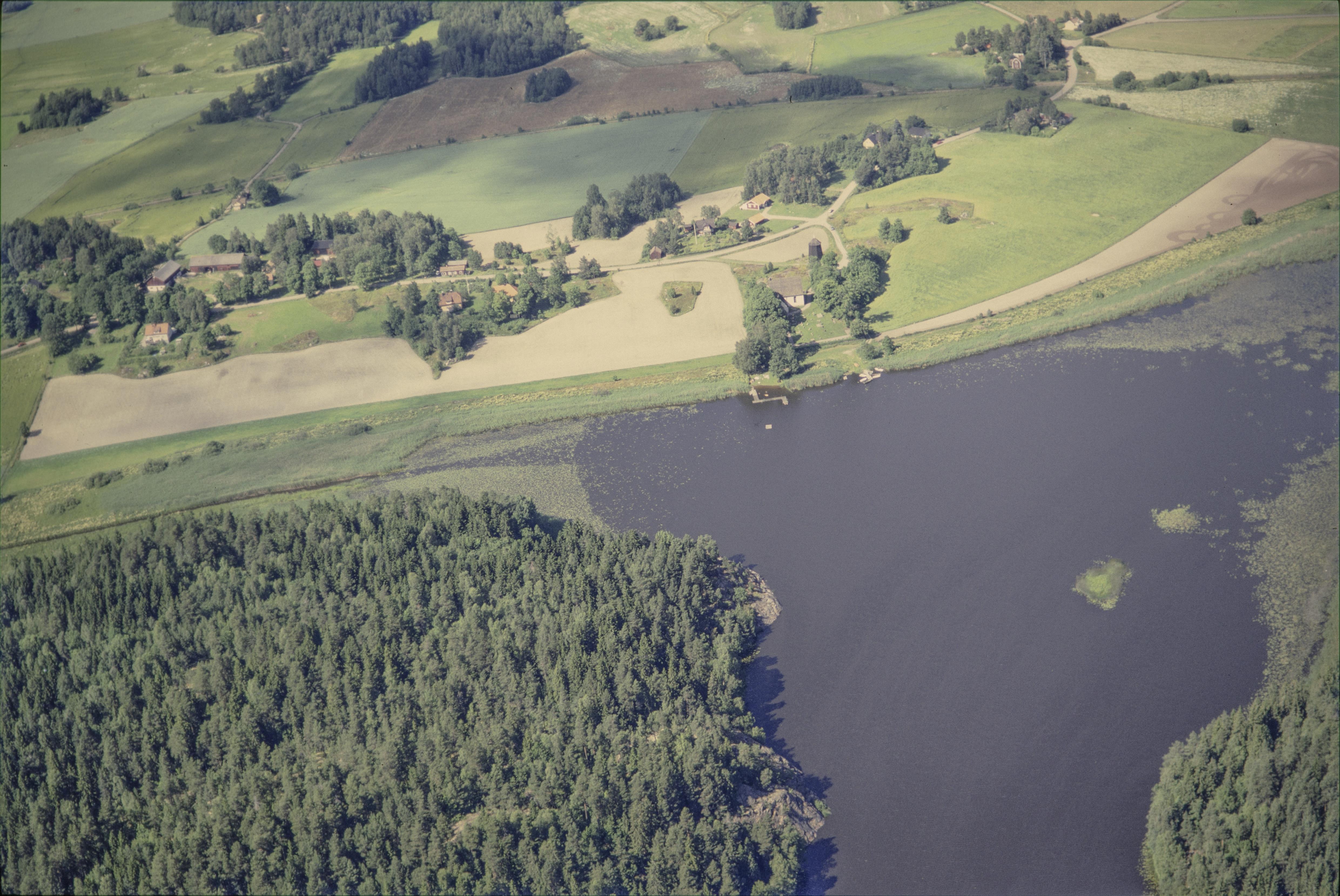 Beskrivning: Malstaby vid Malstasjön. Till höger över bildens mitt Malsta kyrka. Bilden är tagen mot (väderstreck): N