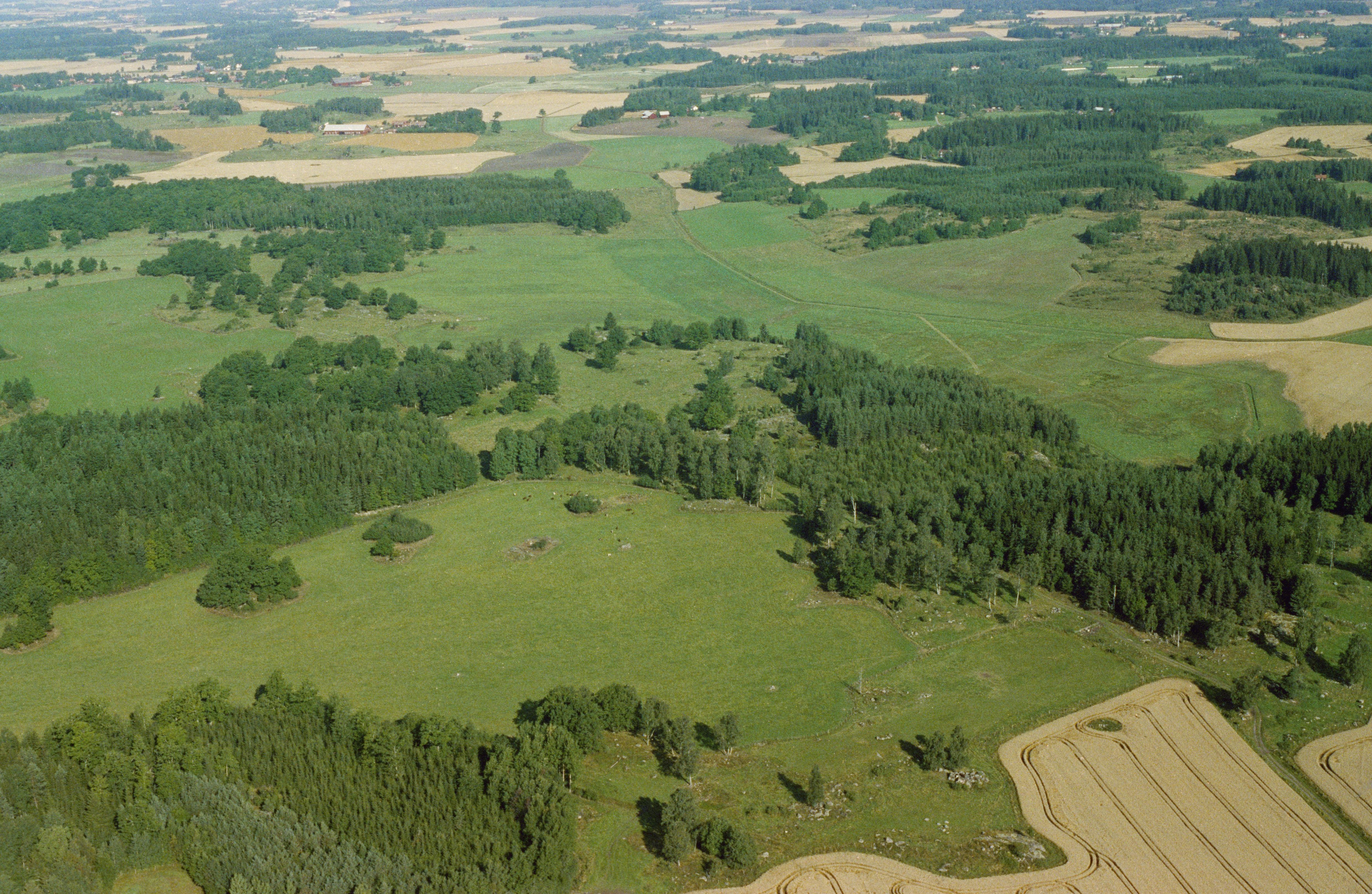 Beskrivning: Stensträngar RAÄnr Askeby 150:1 m.fl. vid bildens mitt. Nere till höger gravfältet RAÄnr Askeby 147:1. Bilden är tagen mot (väderstreck): NV