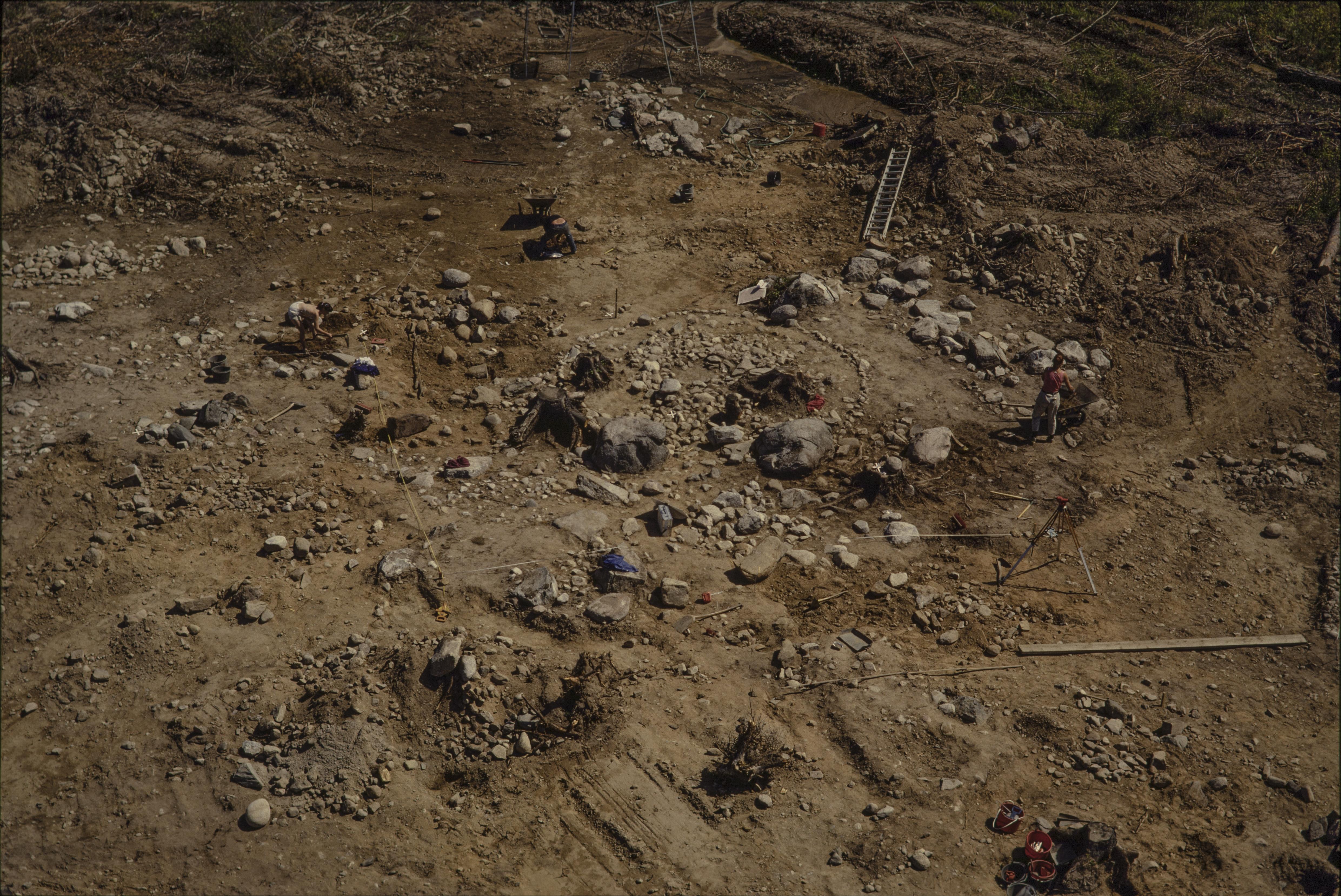 Beskrivning: Arkeologisk undersökning av boplats / hägnad RAÄnr Norrsunda 128:1, 242, 126:1, 129:1, 131:1, 140:1, 235 m.fl. innan bygge av Arlandastad söder om trafikplats Arlanda. Bilden är tagen mot (väderstreck): Ö