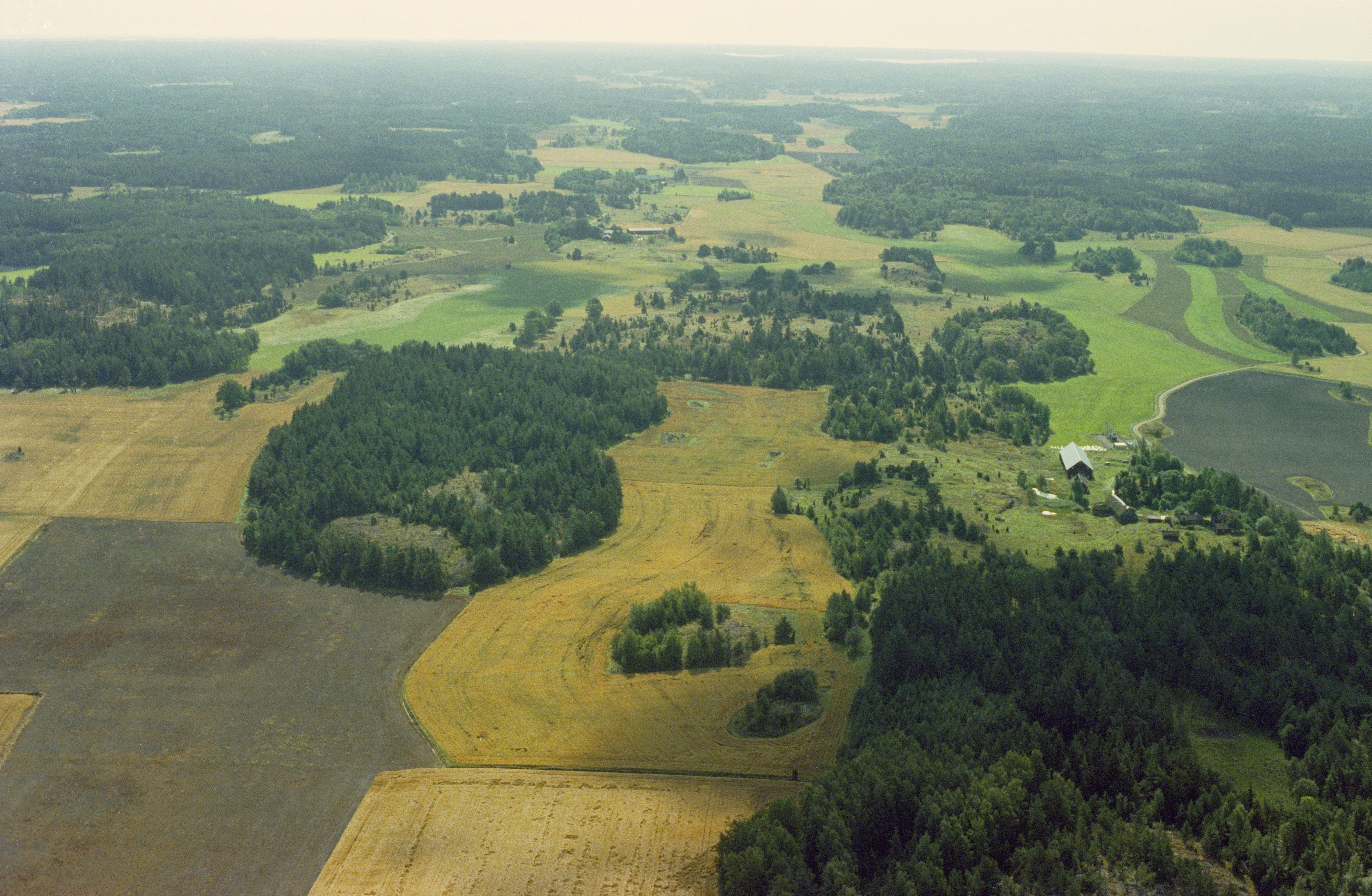 Beskrivning: Fornlämningsområde i Onsten - Jämjöborg, Gravfält RAÄnr Östra Stenby 31:1 vid bildens mitt. I bildens övre del Onsten fornborg RAÄnr Östra Stenby 27:1. I bildens vänstra del Jämjö i Östra Husby socken. Bilden är tagen mot (väderstreck): SO