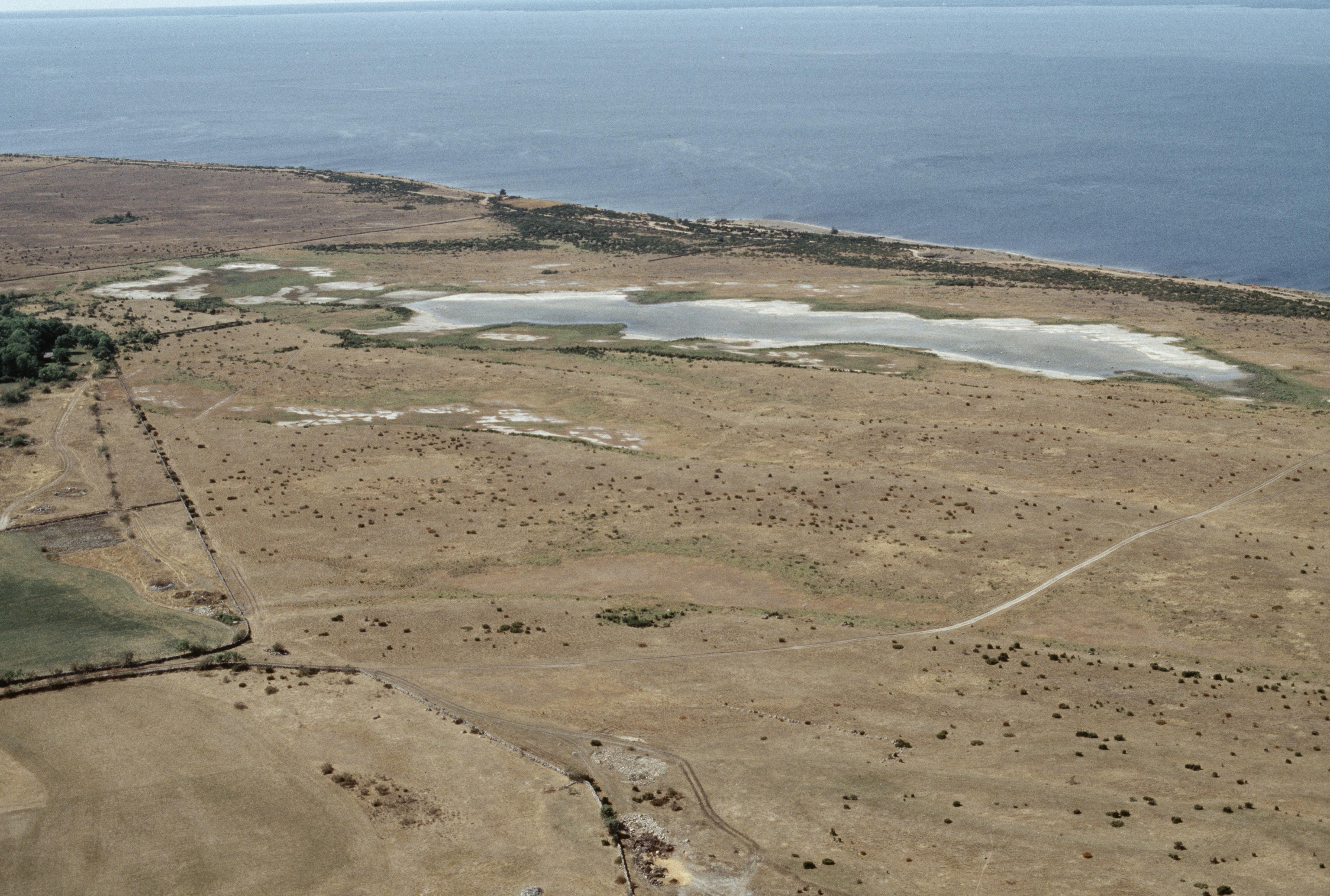 Beskrivning: I bildens övre del sjön Långkärr vid Bruddesta och Korntorps gård. Boplats RAÄnr Alböke 102:1 i området vid sjön. Bilden är tagen mot (väderstreck): SV