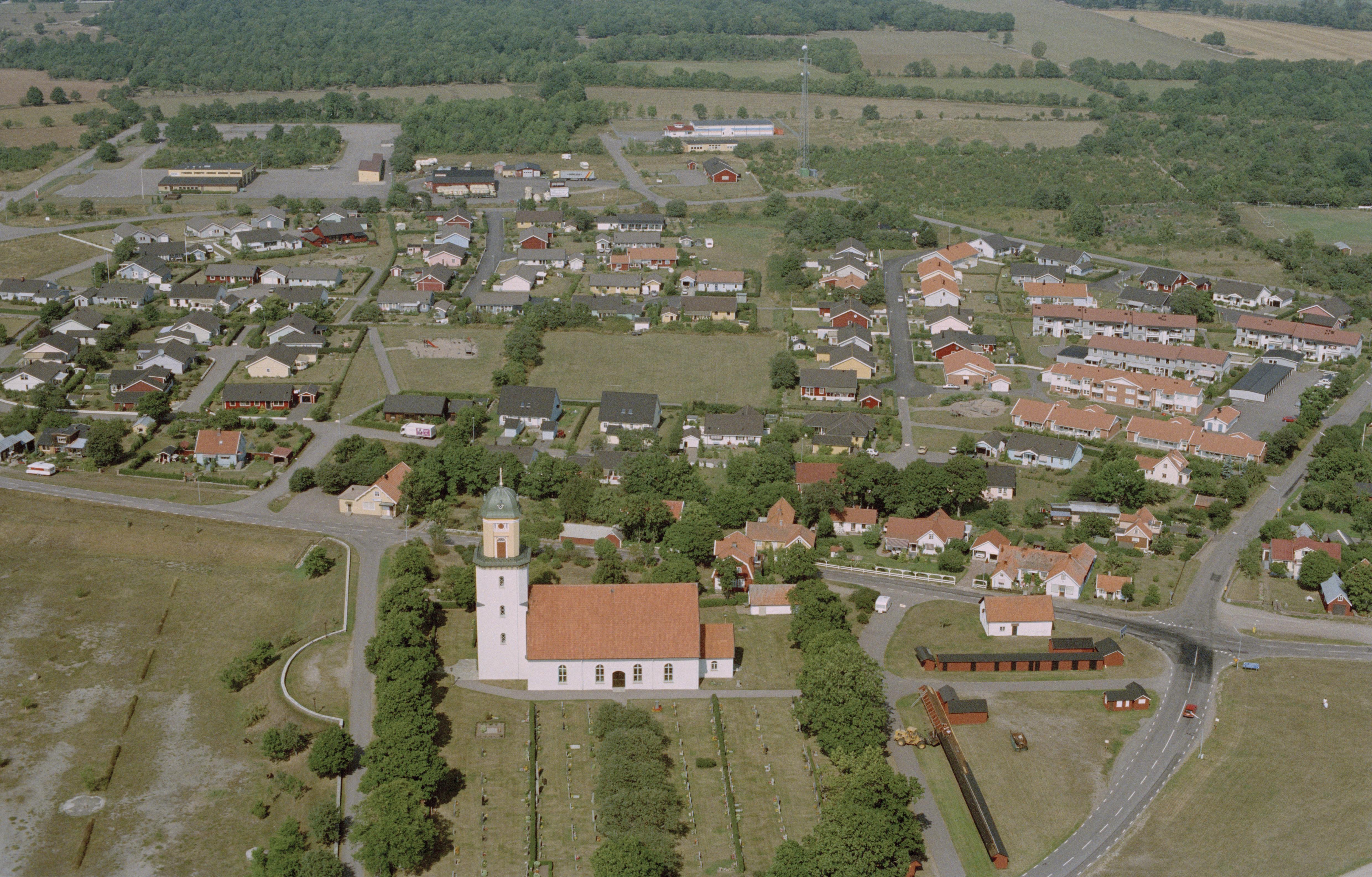 Beskrivning: Algutsrums kyrka och kyrkby. Bilden är tagen mot (väderstreck): N