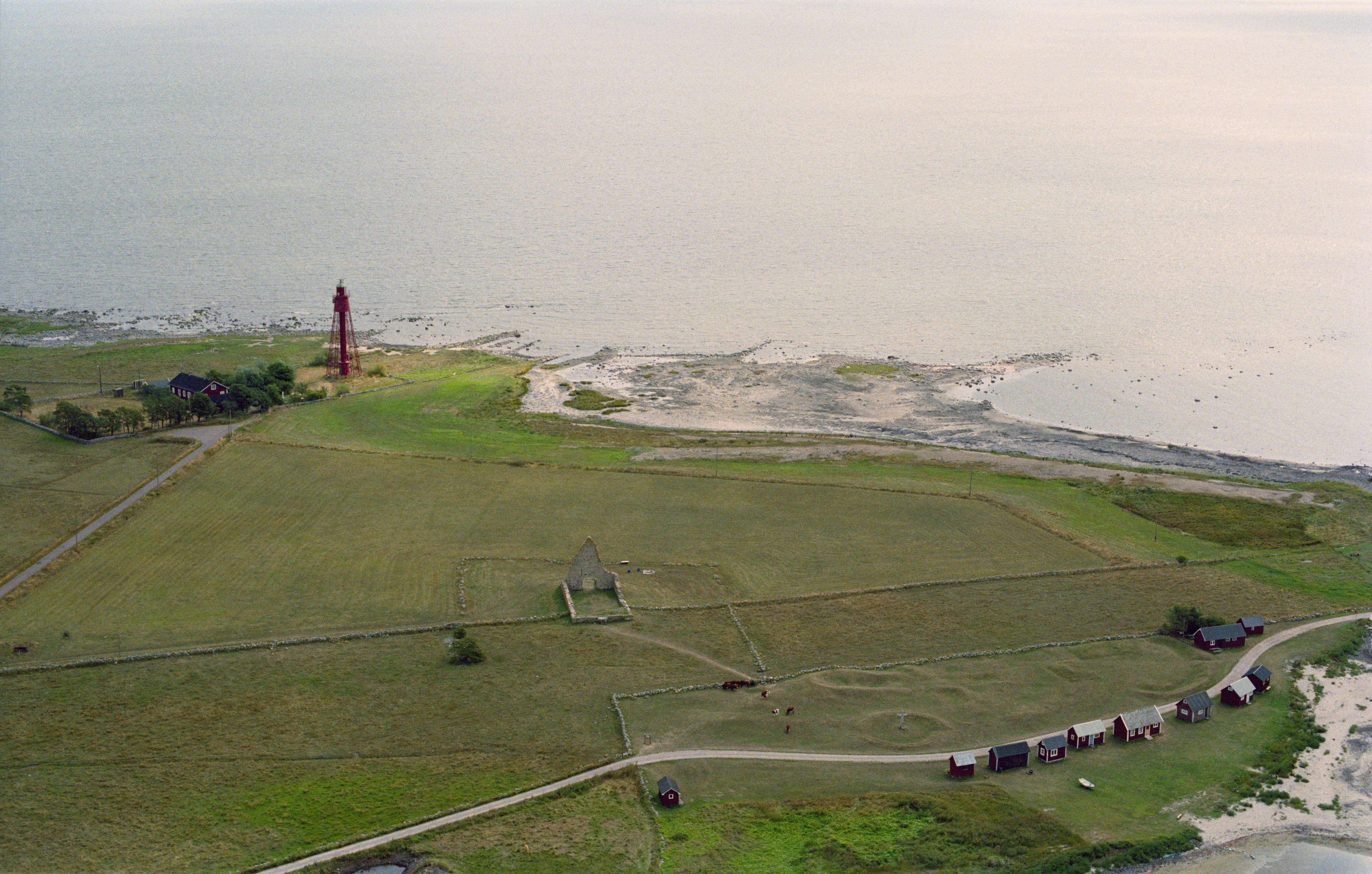 Beskrivning: Kapelluddens fyrplats med fornlämningar. Kapellruin RAÄnr Bredsätra 90, samlingsplats Bredsätra 9:1, stridsvärn Bredsätra 91 m.fl. Bilden är tagen mot (väderstreck): SO