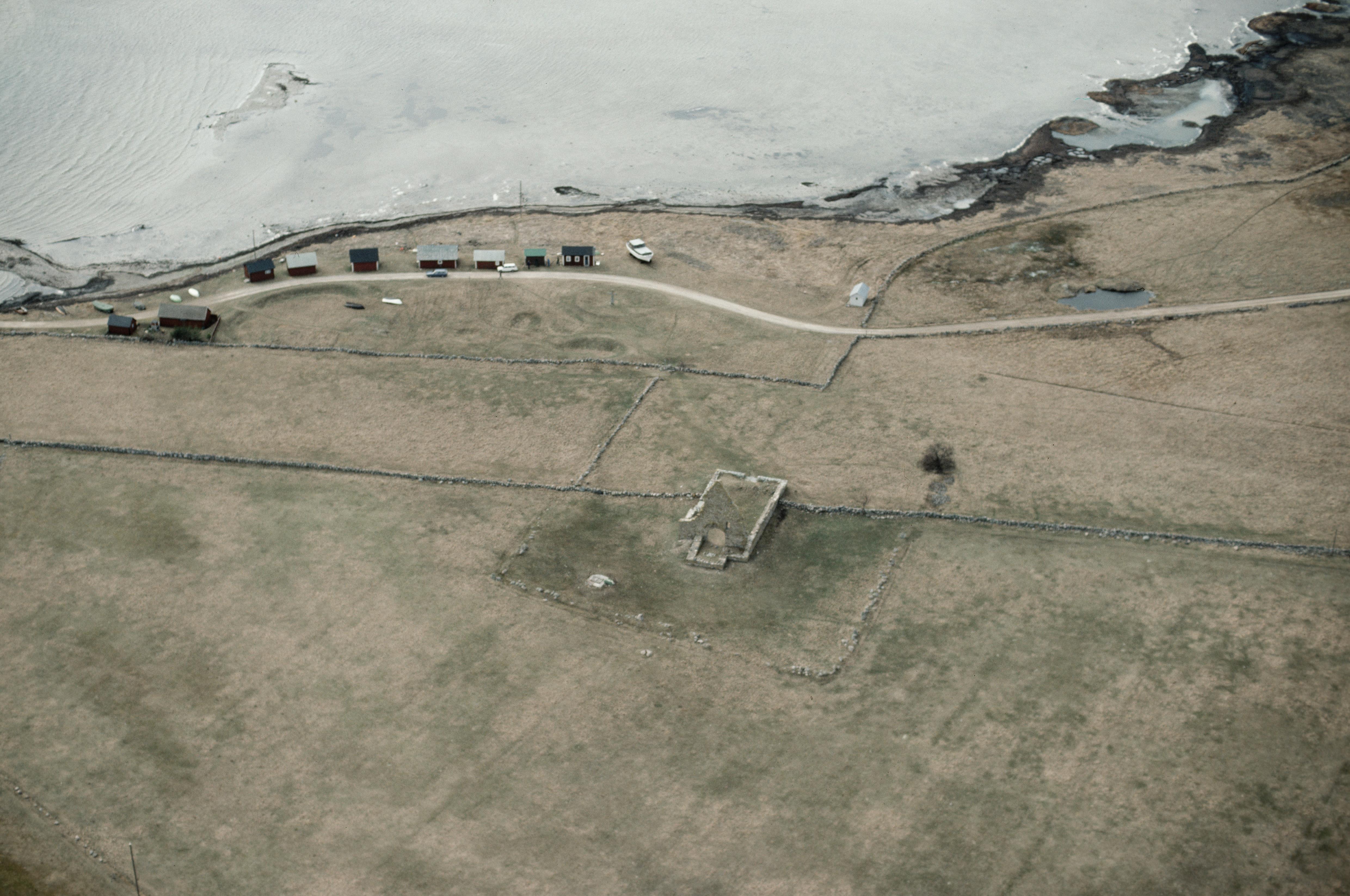 Beskrivning: Kapelluddens fyrplats med fornlämningar. Kapellruin RAÄnr Bredsätra 90, samlingsplats Bredsätra 9:1, stridsvärn Bredsätra 91 m.fl. Bilden är tagen mot (väderstreck): SV
