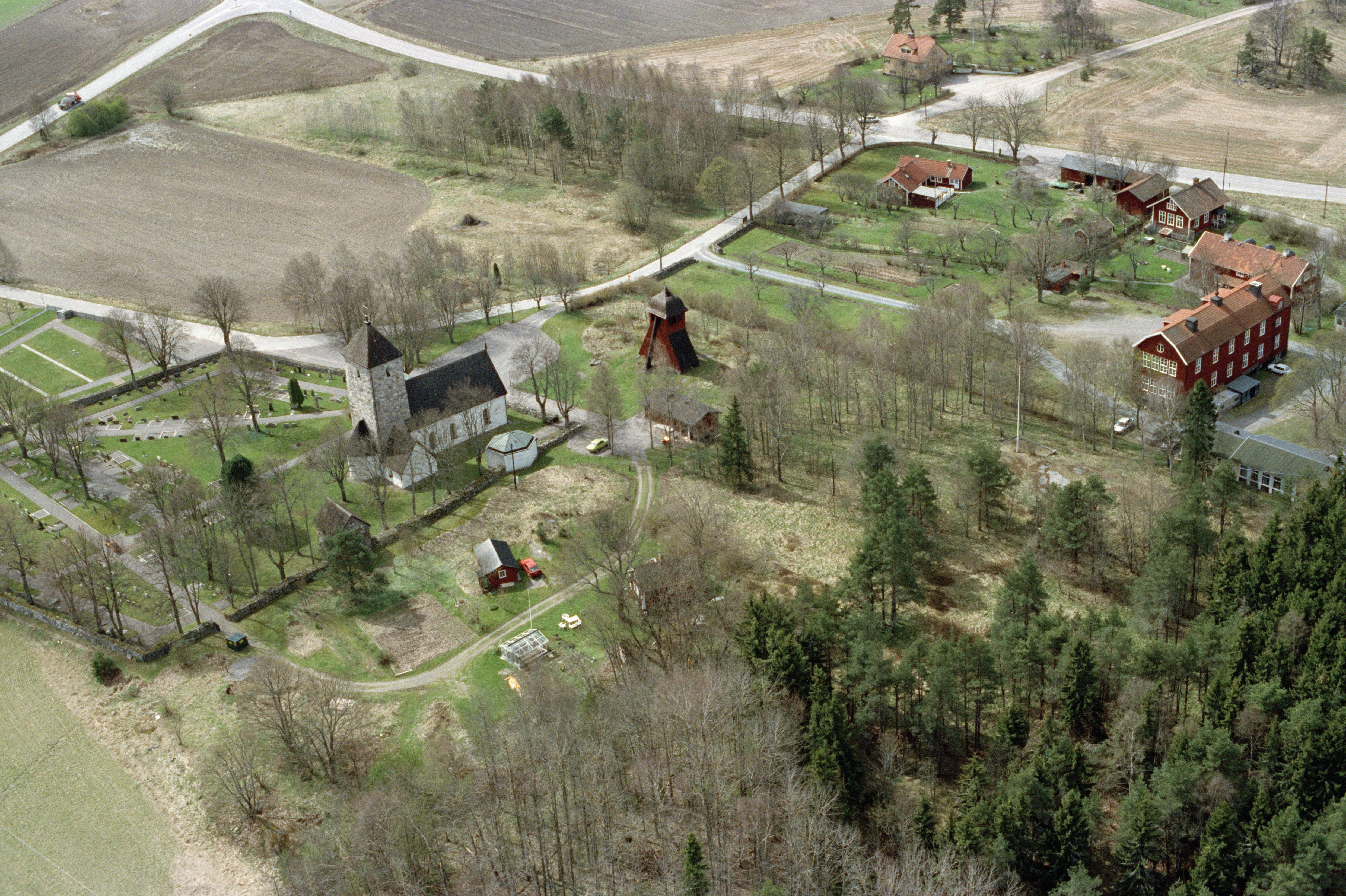 Beskrivning: Norrsunda kyrka och kyrkby. Vid kyrkan gravfält RAÄnr Norrsunda 25:1. Bilden är tagen mot (väderstreck): SSV