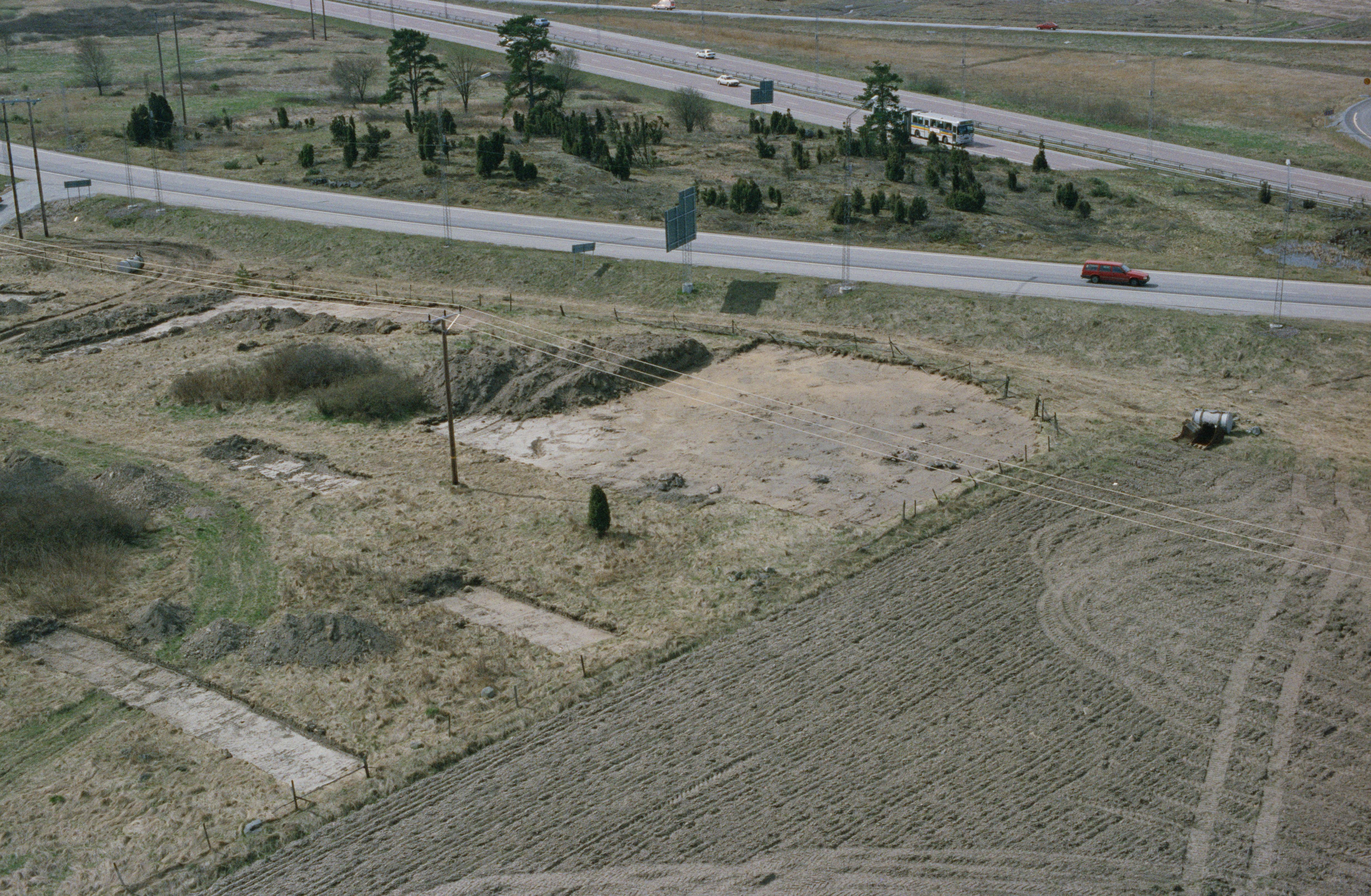 Beskrivning: Arkeologisk undersökning på östsidan av Norslunda golfbana och Märsta trafikplats, innan bygge av järnväg (Arlandabanan). Boplats RAÄnr Norrsunda 185:1-2 och 186:1, färdväg Norrsunda 133:1, gravfält Norrsunda 30:1 m.fl. Bilden är tagen mot (väderstreck): VSV