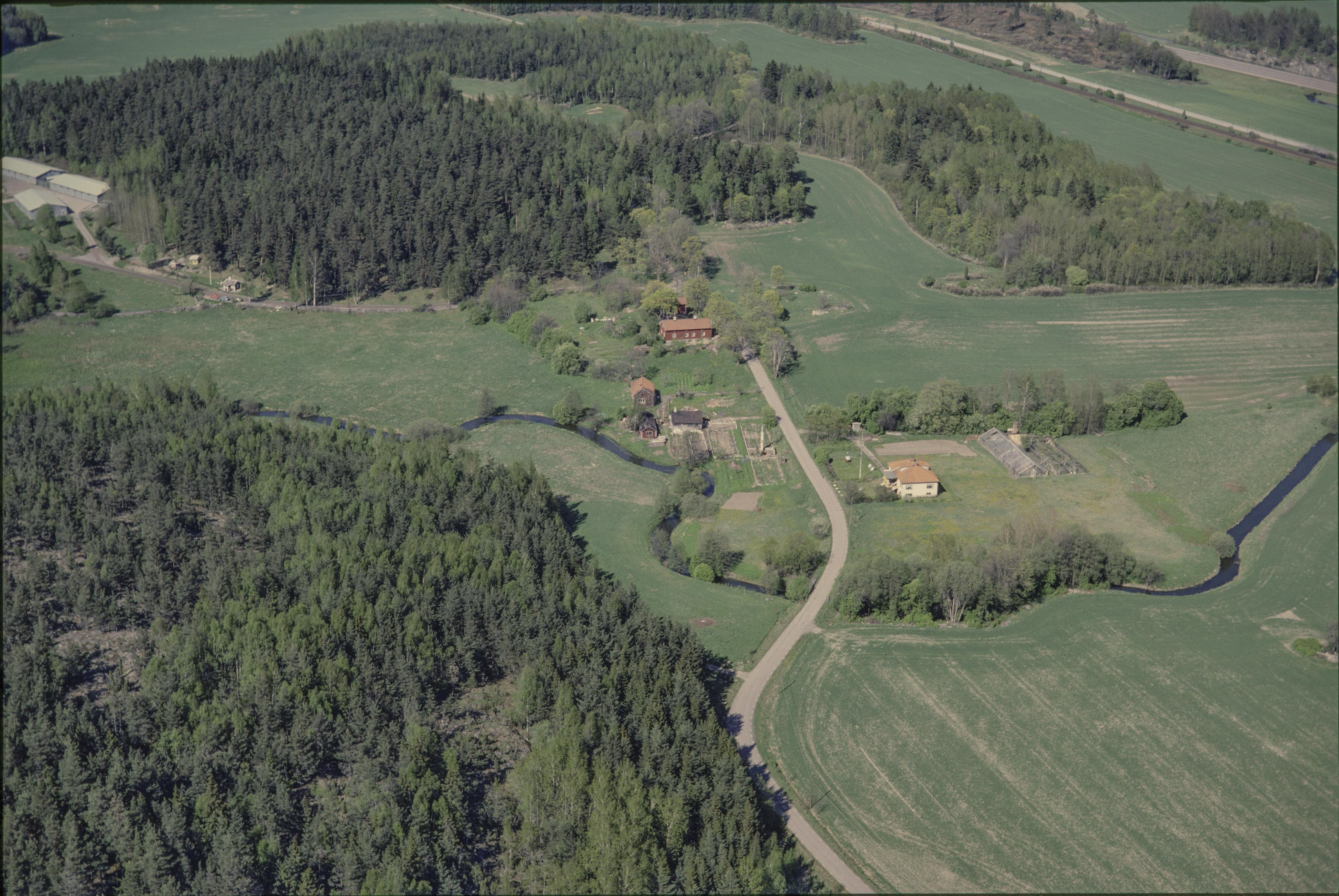 Beskrivning: I bildens övre del Verka by med vägmärke RAÄnr Norrsunda 120:1. Verkaån vid bildens mitt markerar gränsen mellan socknen Norrsunda och Hammarby (i bildens nedre del). Bilden är tagen mot (väderstreck): NO