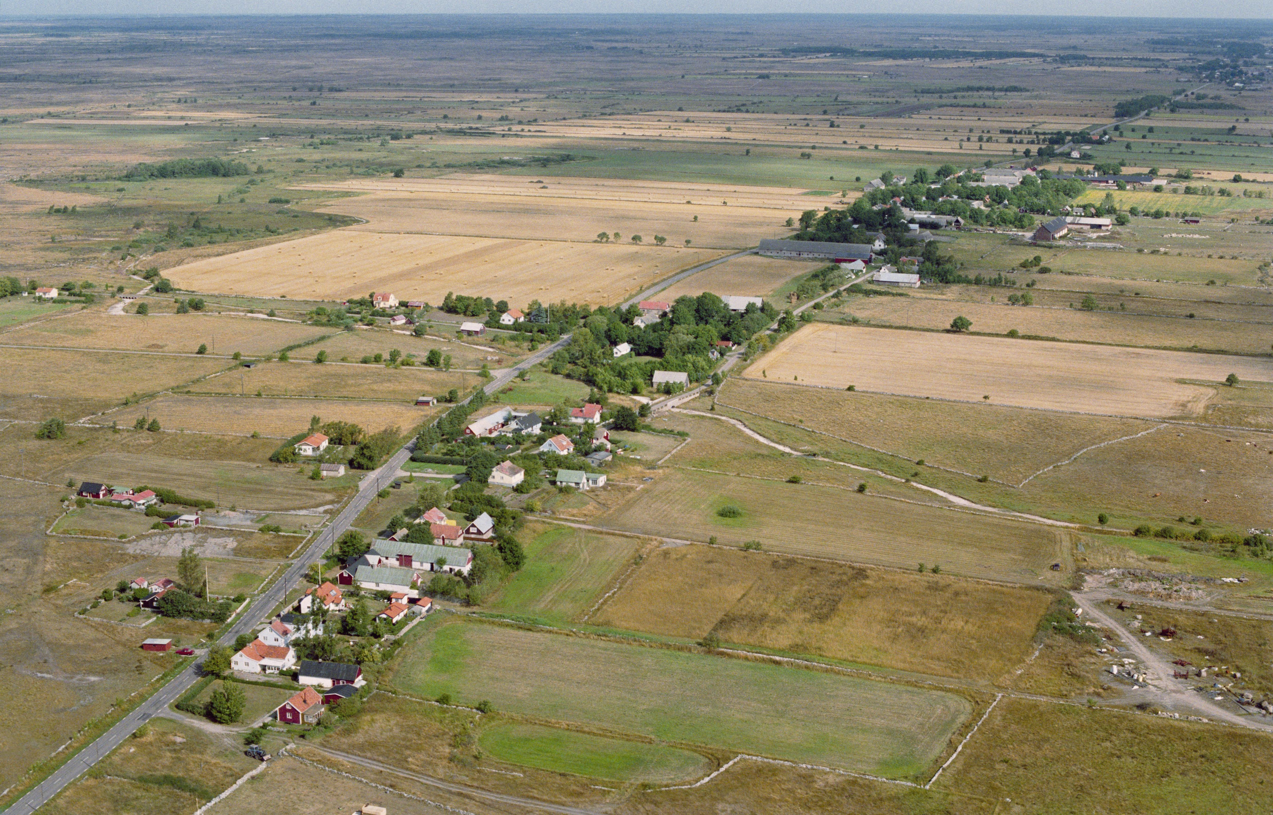 Beskrivning: Anmärkning (övrig): Riksintresse-nr/namn: H8 - Hulterstad - Stenåsa. Socken: Hulterstad, Sandby och Stenåsa socknar. Motivering: Öppet odlingslandskap med tydlig förhistorisk bruknings- och bosättningskontinuitet med många radbyar med malmbebyggelse och betade sjömarker. - Uttryck för riksintresset: Vid Hulterstad ett av öns största järnåldersgravfält, vid Sandby och Triberga ringformiga flatmarksfornborgar, den förra Ölands enda fornborg med strandläge, spridda husgrunder, gravfält och gravar. Ett flertal stora radbyar i laga läge med malmbebyggelse. En av Ölands största och bäst bevarade malmar ligger vid Hulterstads kyrkby, också ett sockencentrum. Gårdsbyggnader från 1700- och 1800-talen i Frösslunda alvar(…) Texten i detta fält har förkortats vid migrering till e-arkivet. Se filbilagan extra.xml för fullständig information under note_archivist. Beskrivning: Alvaret. Skärlövs by. Hulterstad i bildens övre del till höger. Bilden är tagen mot (väderstreck): NNV Fotosyfte: Flygbildsdokumentation