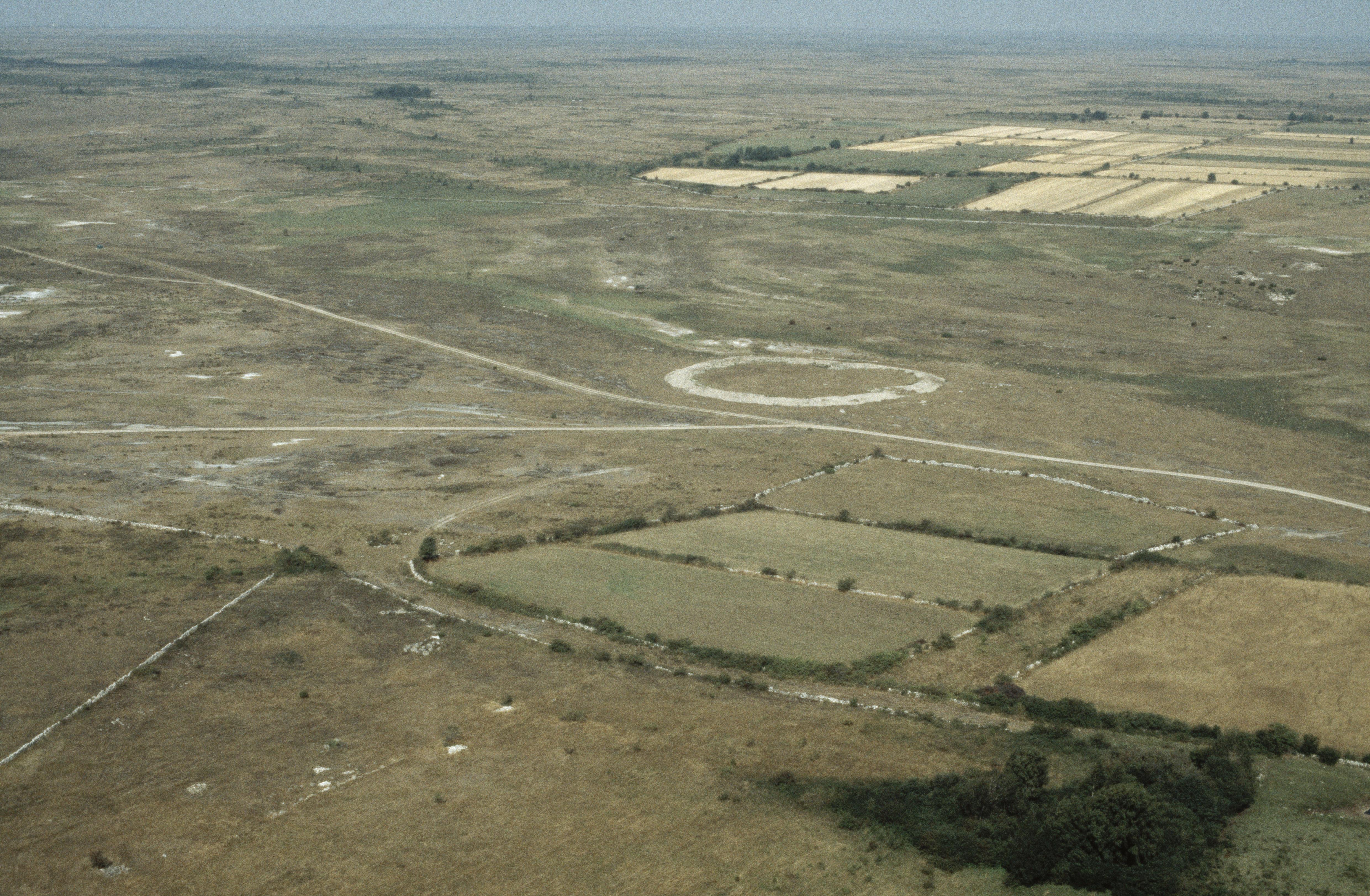 Beskrivning: Alvaret. Fornborg RAÄnr Hulterstad 20:1 vid bildens mitt. Bilden är tagen mot (väderstreck): NNV
