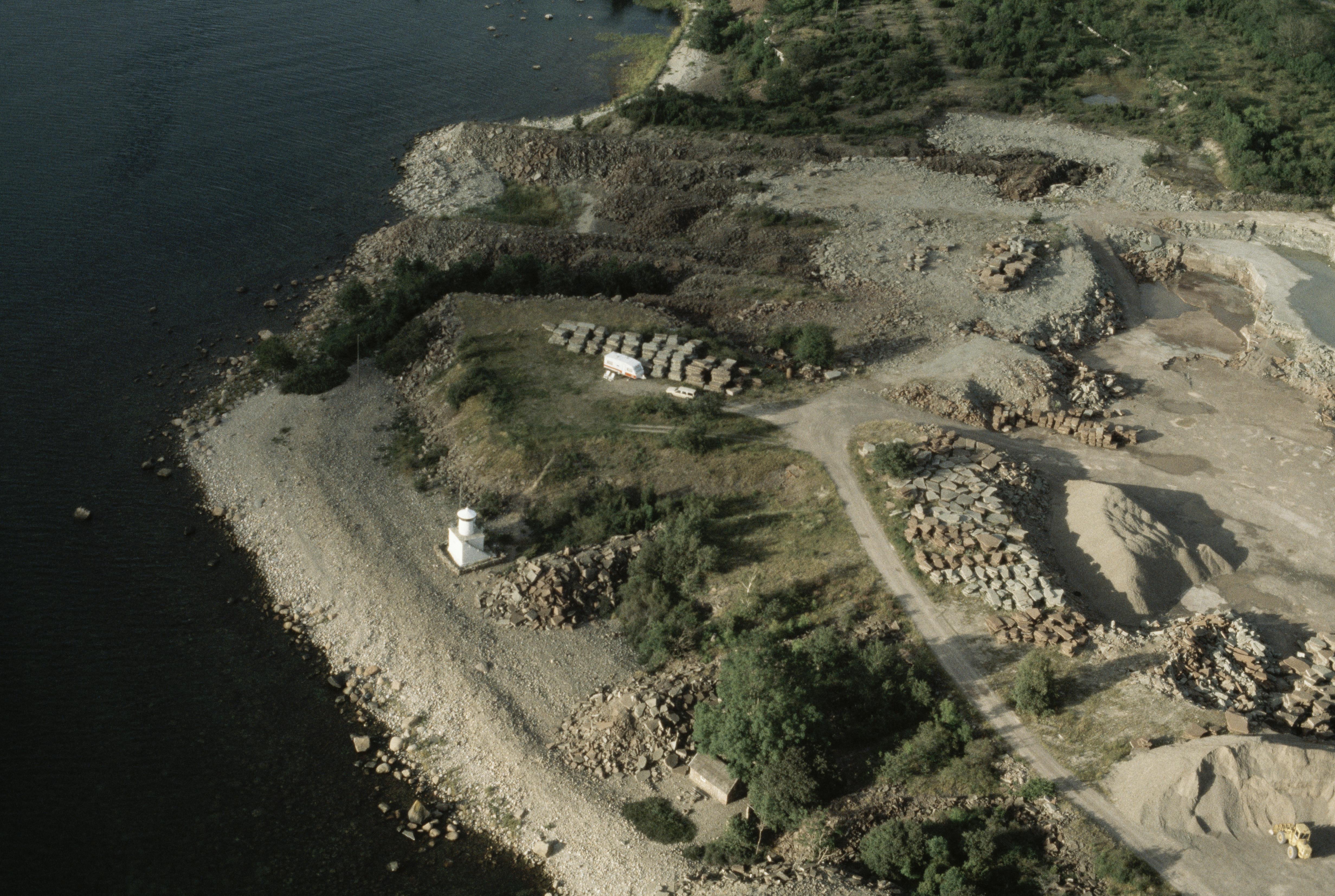 Beskrivning: Stenbrott på Hornsudden. Röse RAÄnr Högby 28:1. Bilden är tagen mot (väderstreck): NNO