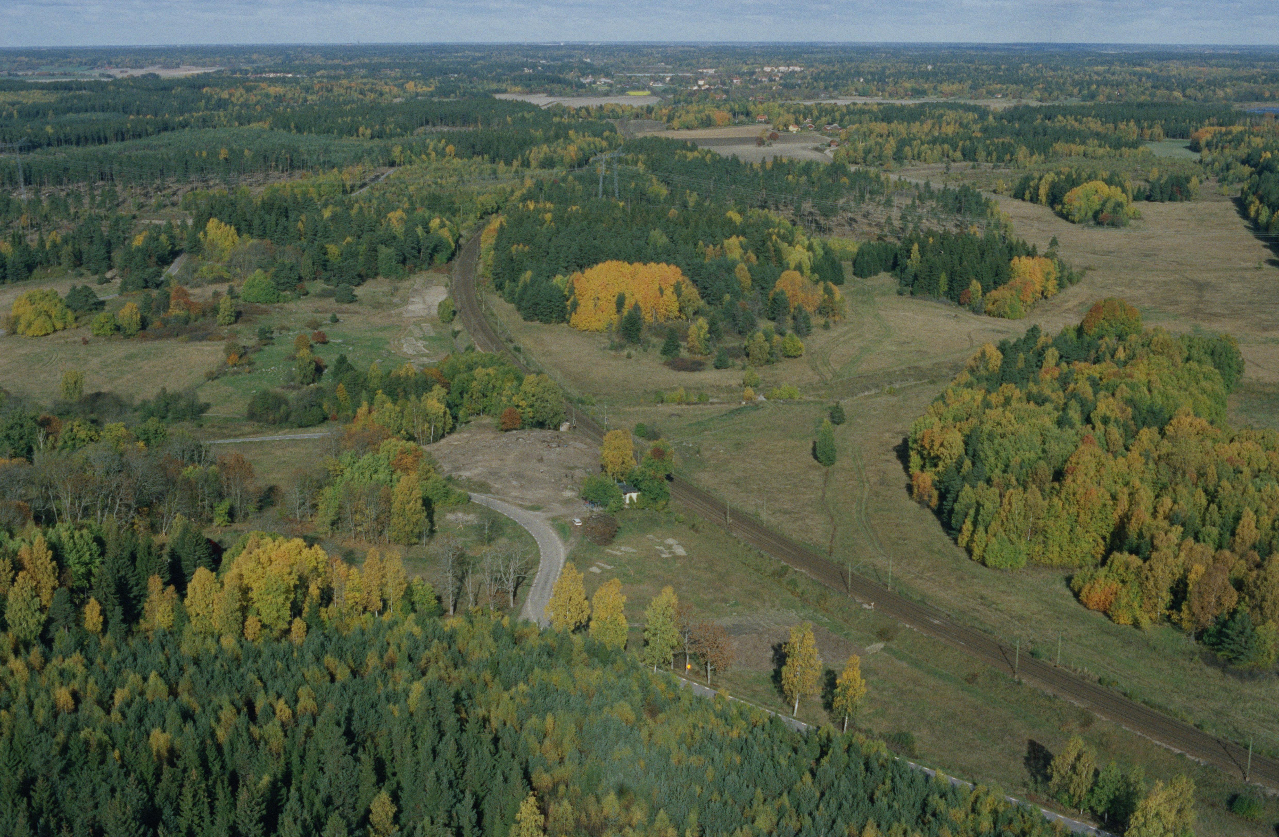 Beskrivning: Arkeologisk undersökning vid Forsby i Forsbyåns dalgång. Vid bildens mitt husgrund RAÄnr Knivsta 176:1-2 och stensättning Knivsta 189:1. Över bildens mitt gravfält RAÄnr Knivsta 126:1 med hällristningar Knivsta 269:1-9 m.fl. vid Grindstugan. Bilden är tagen mot (väderstreck): N