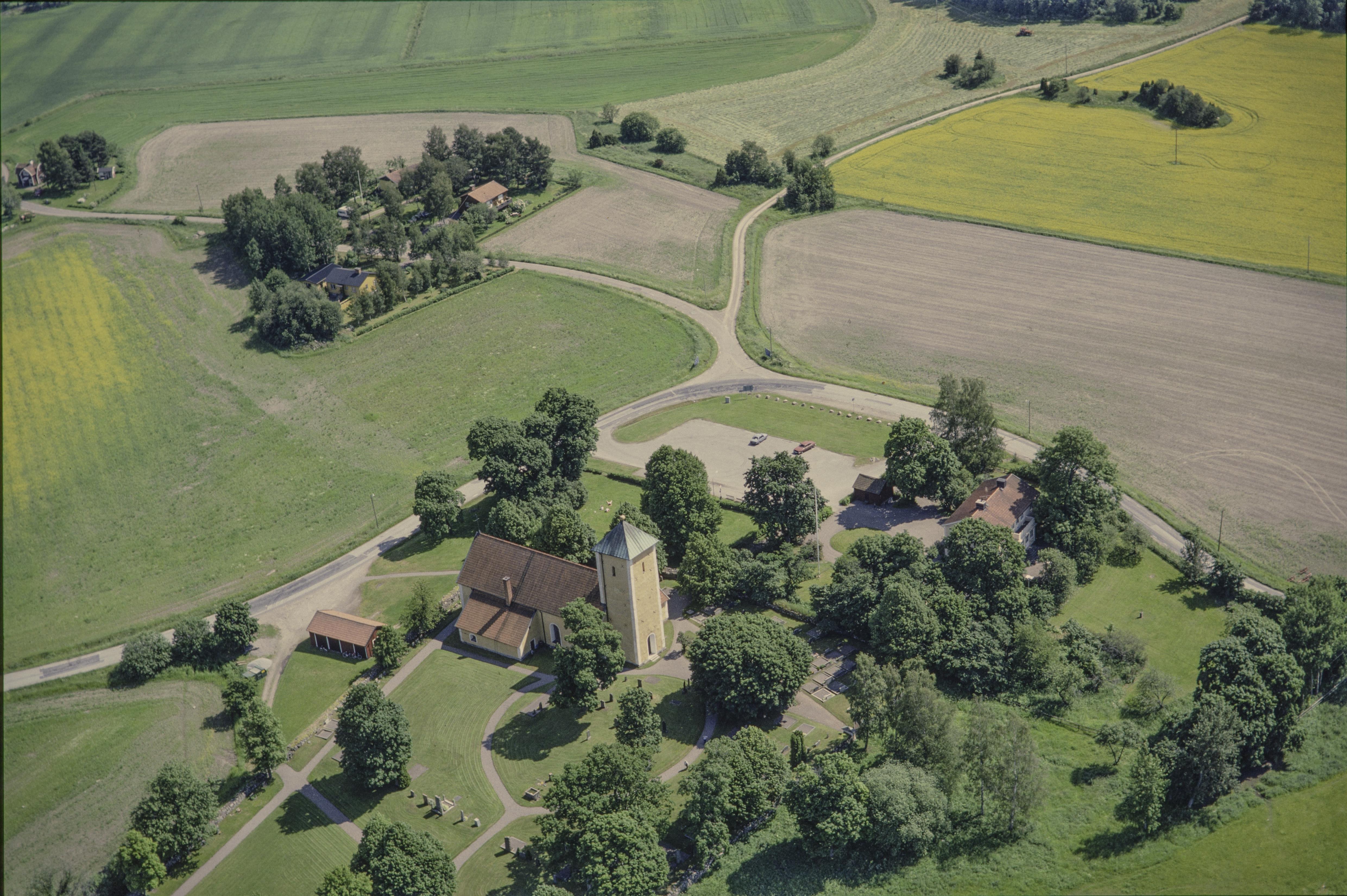 Beskrivning: Anmärkning (övrig): Riksintresse-nr/namn: AB67 - Odensala - Husby Ärlinghundra. Socken: Odensala och Husby Ärlinghundra socknar. Motivering: Slättbygd där den agrarhistoriska utvecklingen kan följas alltsedan äldre järnålder. (Fornlämningsmiljö). - Uttryck för riksintresset: Över 600 gravar på dussinet bygravfält, gårdslägen och lämningar från järnålderns täta bygd, bl.a. husgrundsterrasser (Bromsta), kultplatsen Odinsharg och omfattande stensträngssystem. Det öppna odlingslandskapet med äldre vägnät, runstenar och de medeltida sockenkyrkorna Odensala och Husby-Ärlinghunda som centralpunkter. Husby gamla kyrkskola med anor från 1697. Bymiljöer, bl.a. den solskiftade radbyn Älgesta, och utskiftade gårdar. [Text(…) Texten i detta fält har förkortats vid migrering till e-arkivet. Se filbilagan extra.xml för fullständig information under note_archivist. Beskrivning: Odensala kyrka. Bilden är tagen mot (väderstreck): SO Fotosyfte: Flygbildsdokumentation