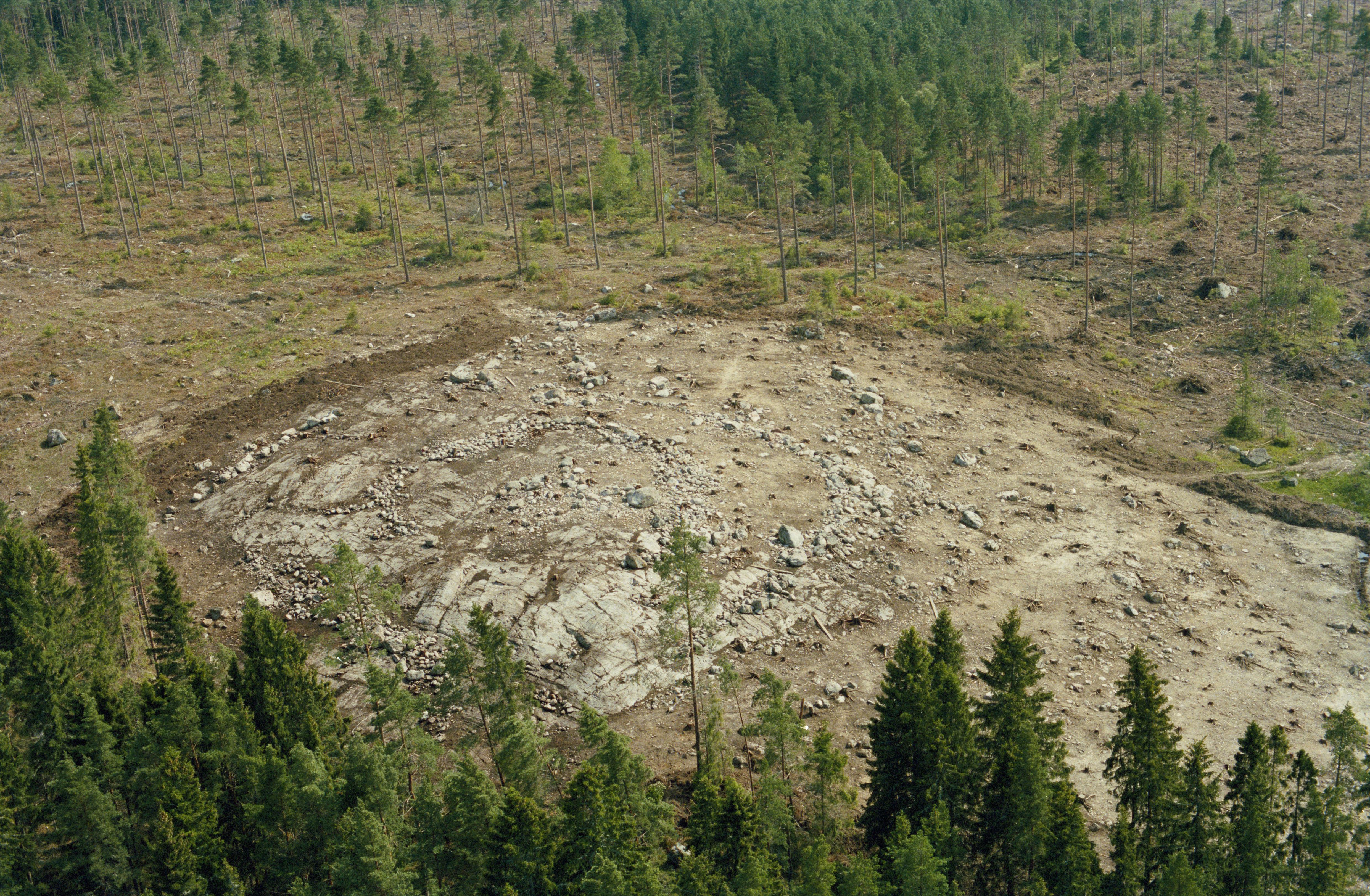 Beskrivning: Arkeologisk undersökning innan bygge av järnväg (Arlandabanan) i Rickebyåns dalgång i områden söder om Svartsjön. Fornborg Odensala 235:1, boplats Odensala 489:1, m.fl. Bilden är tagen mot (väderstreck): SSV