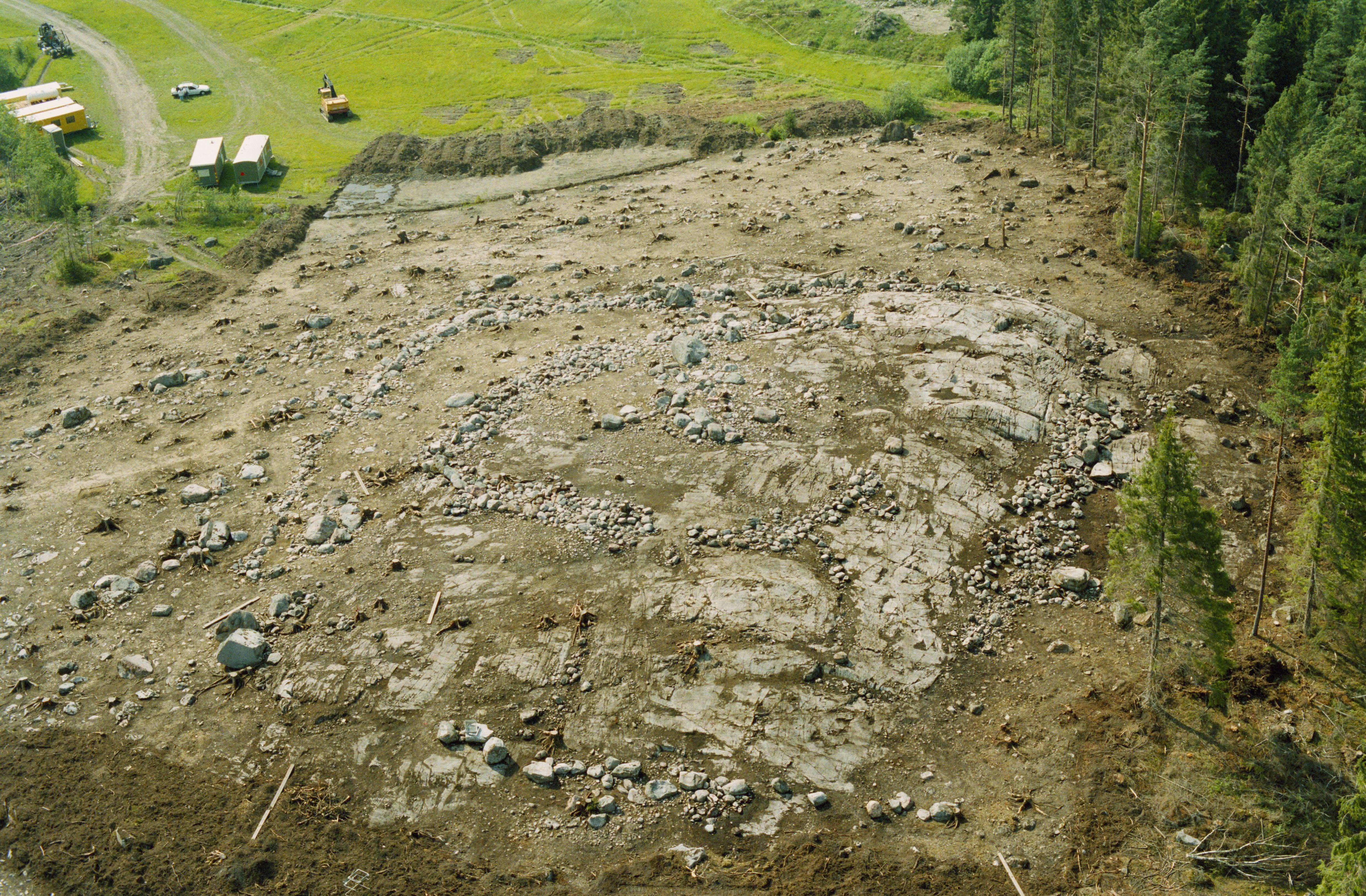 Beskrivning: Arkeologisk undersökning innan bygge av järnväg (Arlandabanan) i Rickebyåns dalgång i områden söder om Svartsjön. Fornborg Odensala 235:1, boplats Odensala 489:1, m.fl. Bilden är tagen mot (väderstreck): S