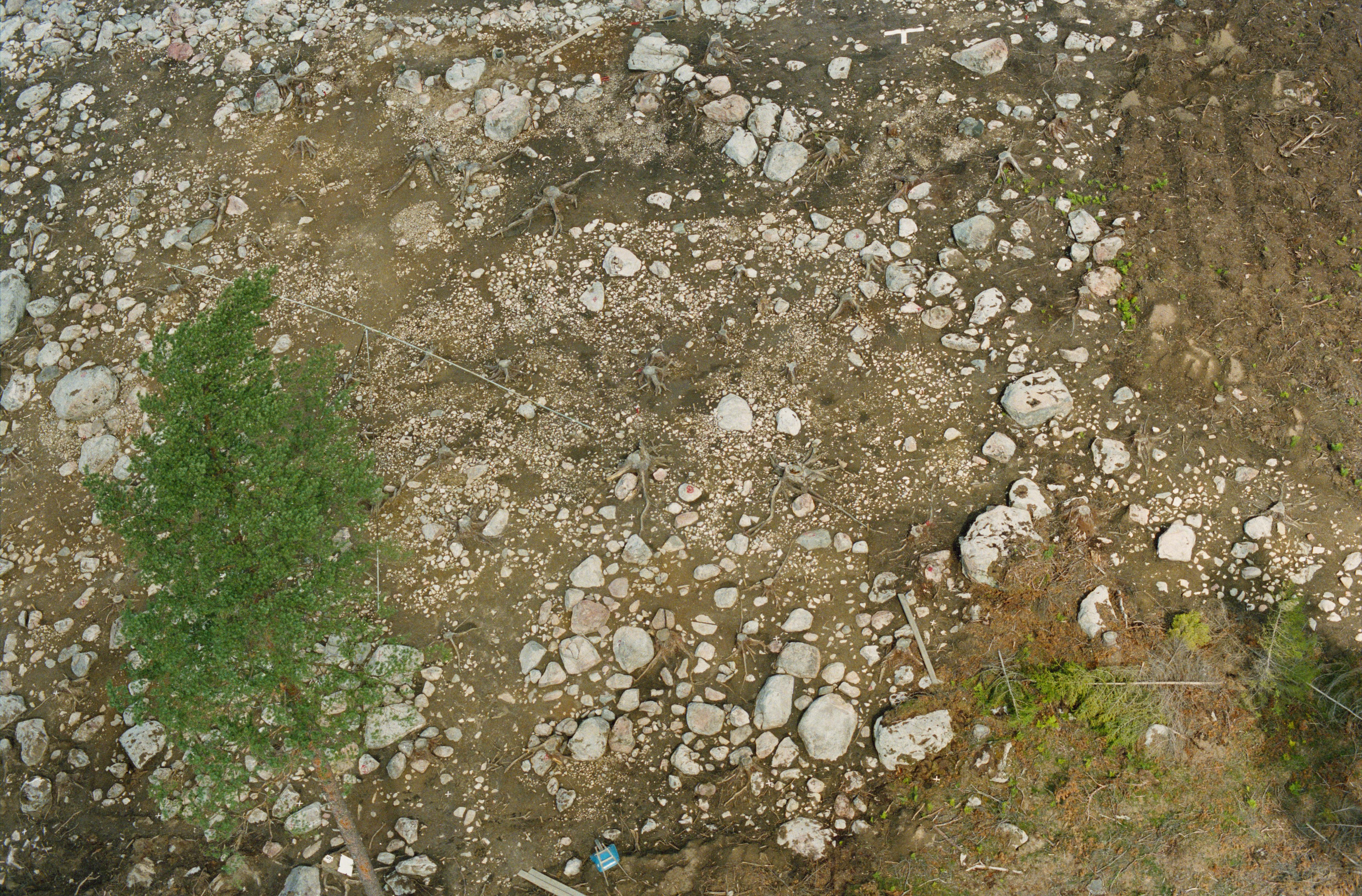 Beskrivning: Arkeologisk undersökning innan bygge av järnväg (Arlandabanan) i Rickebyåns dalgång i områden söder om Svartsjön. Fornborg Odensala 235:1, boplats Odensala 489:1, m.fl. Bilden är tagen mot (väderstreck): N