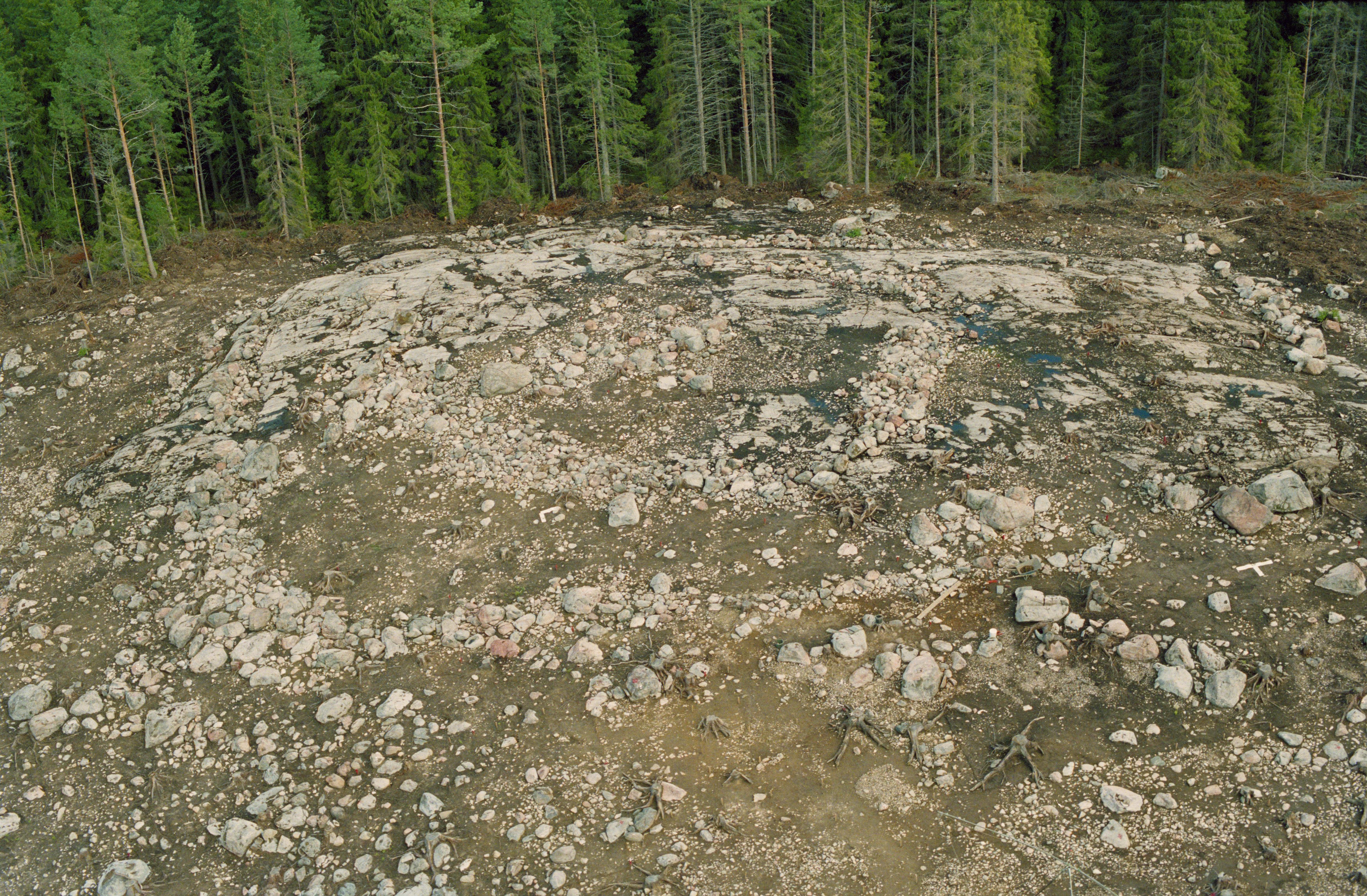 Beskrivning: Arkeologisk undersökning innan bygge av järnväg (Arlandabanan) i Rickebyåns dalgång i områden söder om Svartsjön. Fornborg Odensala 235:1, boplats Odensala 489:1, m.fl. Bilden är tagen mot (väderstreck): N