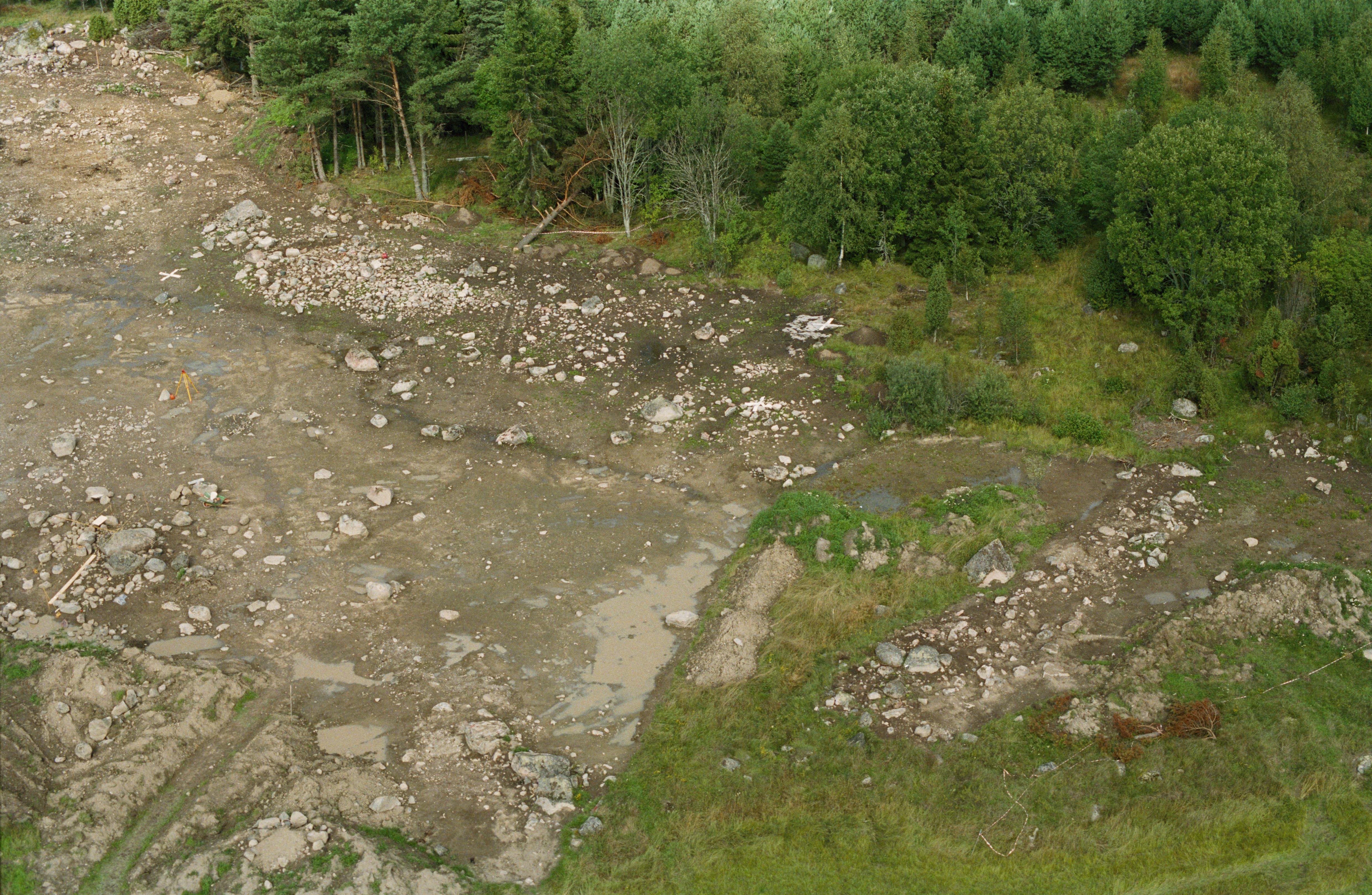 Beskrivning: Arkeologisk undersökning innan bygge av järnväg (Arlandabanan) i Rickebyåns dalgång vid Åslunda by sydost om Svartsjön. Bo- och gravplats RAÄnr Odensala 11:1, 13:1 och 402:1-2 m.fl. Bilden är tagen mot (väderstreck): N