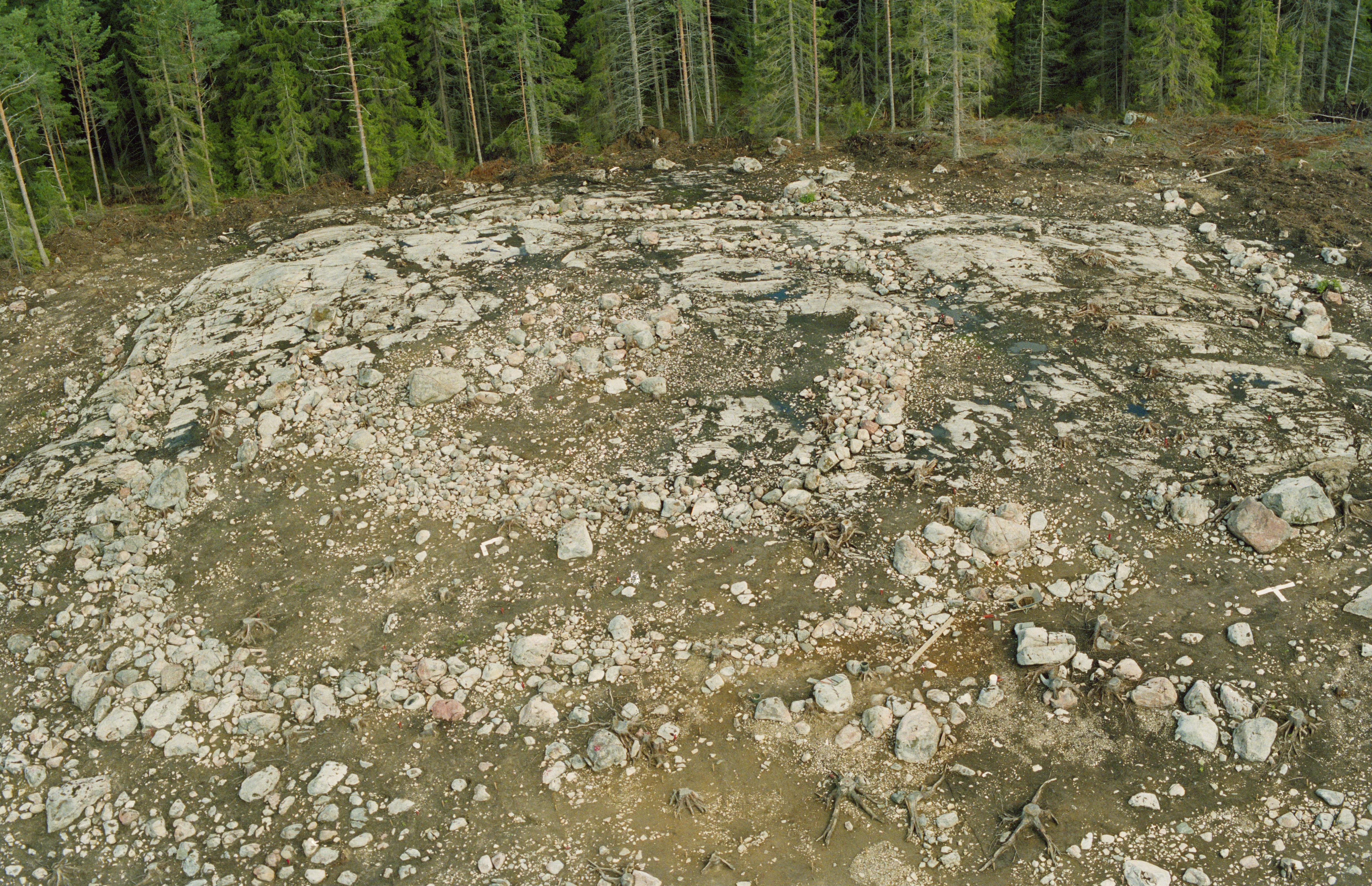 Beskrivning: Arkeologisk undersökning innan bygge av järnväg (Arlandabanan) i Rickebyåns dalgång i områden söder om Svartsjön. Fornborg Odensala 235:1, boplats Odensala 489:1, m.fl. Bilden är tagen mot (väderstreck): N