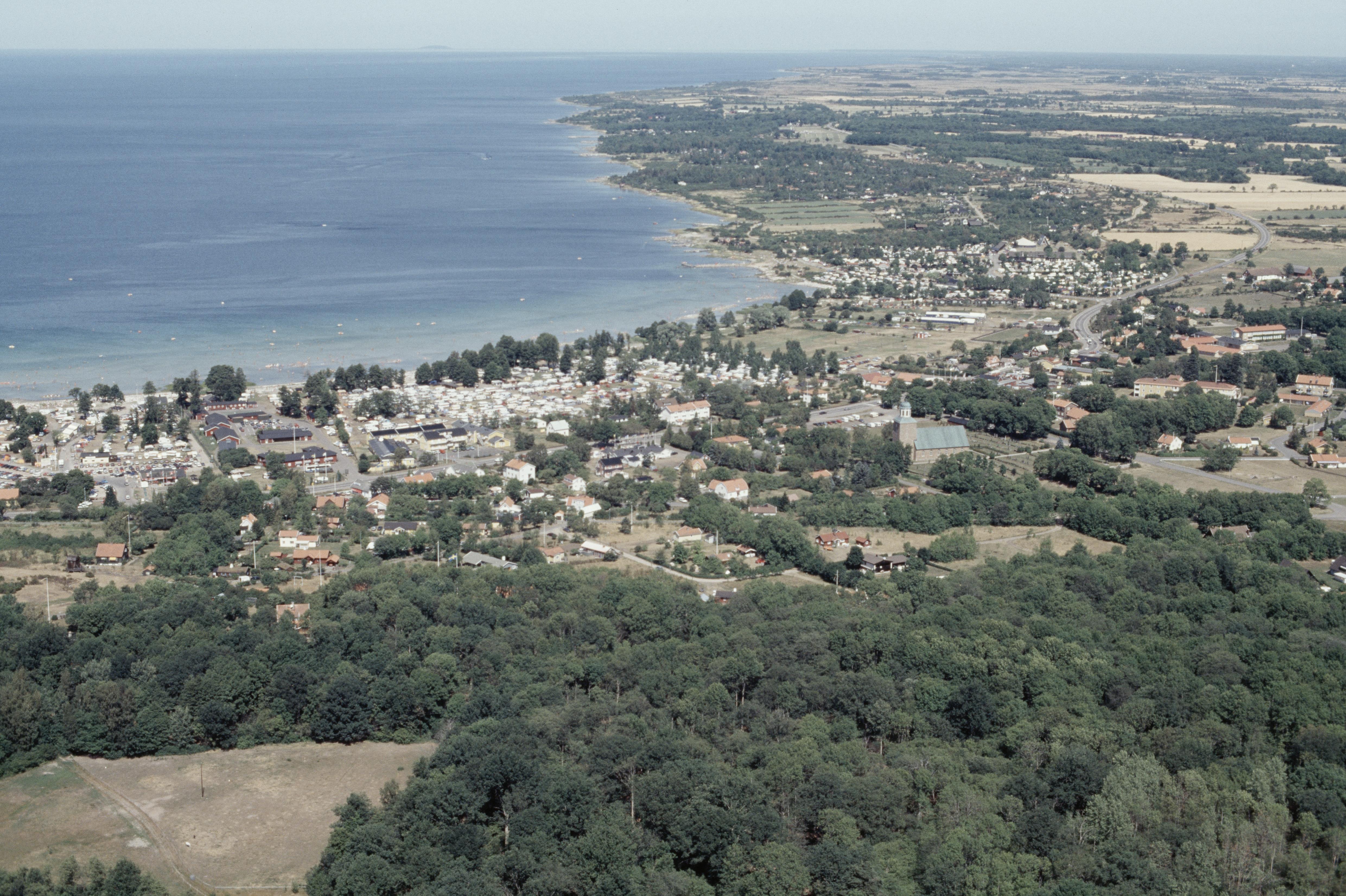Beskrivning: Köpingsviks tätort. Köpings kyrka till höger om bildens mitt. Bilden är tagen mot (väderstreck): NNO