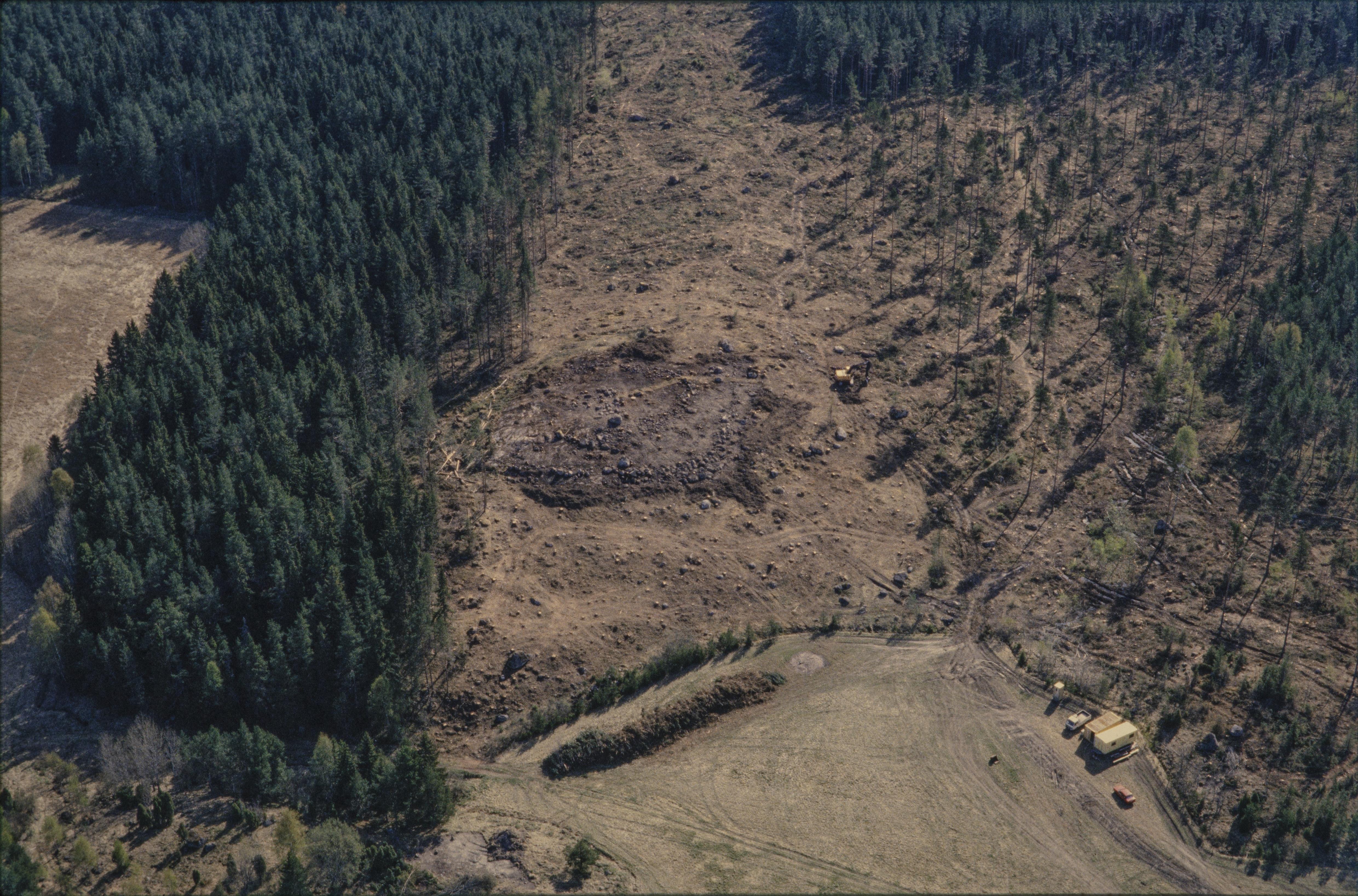 Beskrivning: Arkeologisk undersökning innan bygge av järnväg (Arlandabanan) i Rickebyåns dalgång i områden söder om Svartsjön. Fornborg Odensala 235:1, boplats Odensala 489:1, m.fl. Bilden är tagen mot (väderstreck): ONO