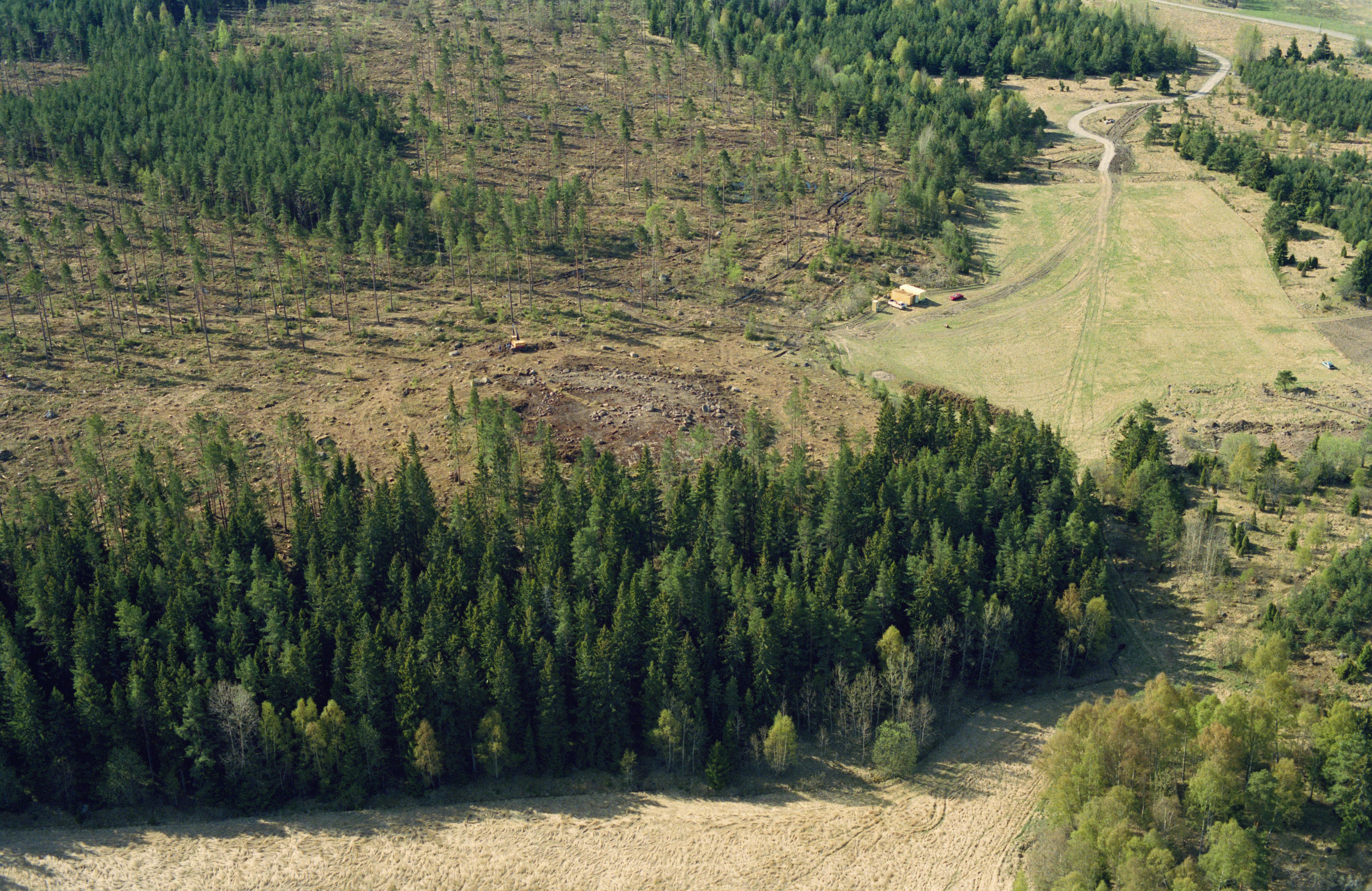 Beskrivning: Arkeologisk undersökning innan bygge av järnväg (Arlandabanan) i Rickebyåns dalgång i områden söder om Svartsjön. Fornborg Odensala 235:1, boplats Odensala 489:1, m.fl. Bilden är tagen mot (väderstreck): SV