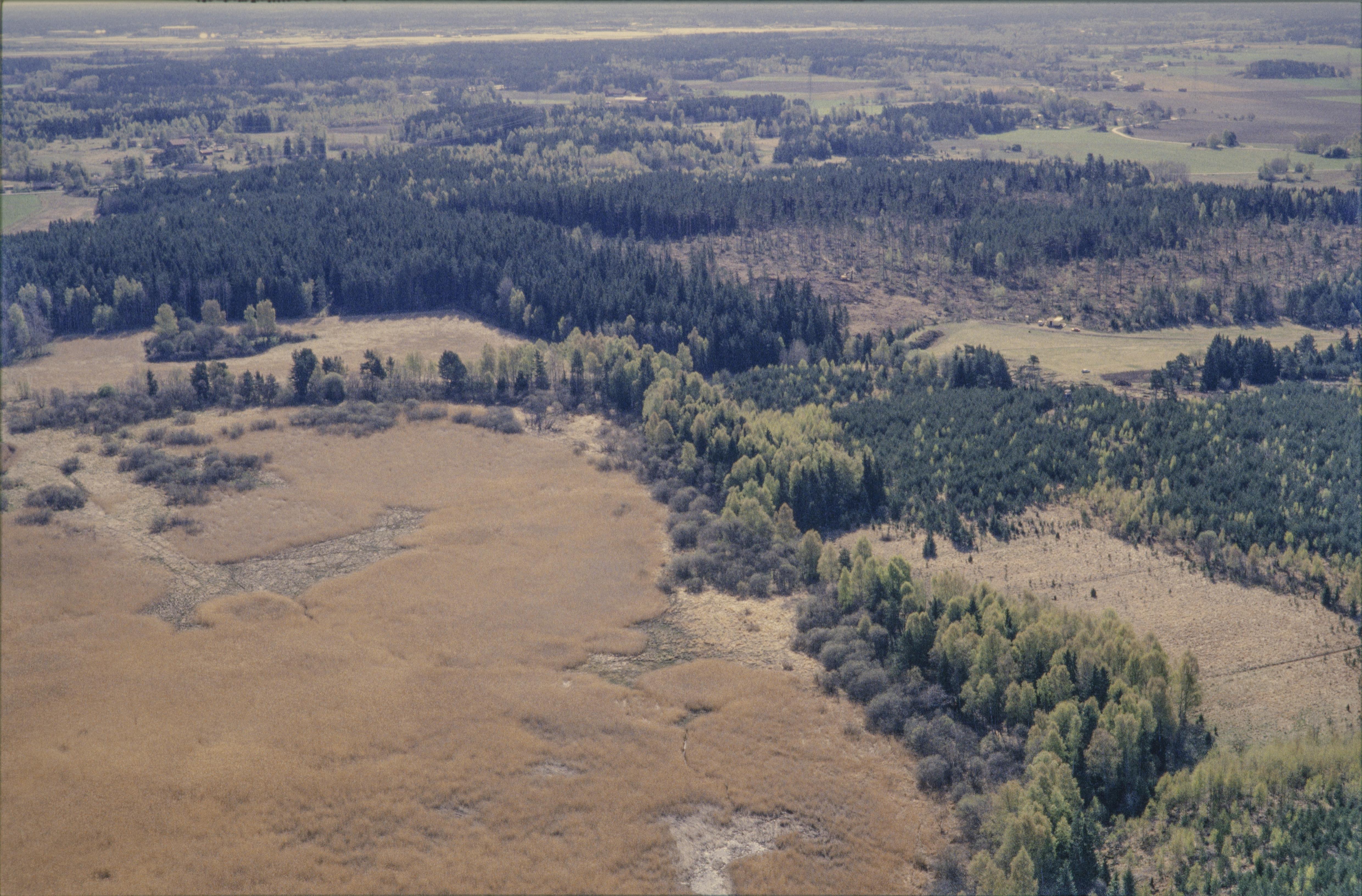 Beskrivning: Rickebyåns dalgång i vid Svartsjön. Till vänster över bildens mitt hägnad RAÄnr Odensala 388:1. Över bildens mitt fornborg Odensala 235:1 m.fl. vid Sjötorpet. Bilden är tagen mot (väderstreck): Ö