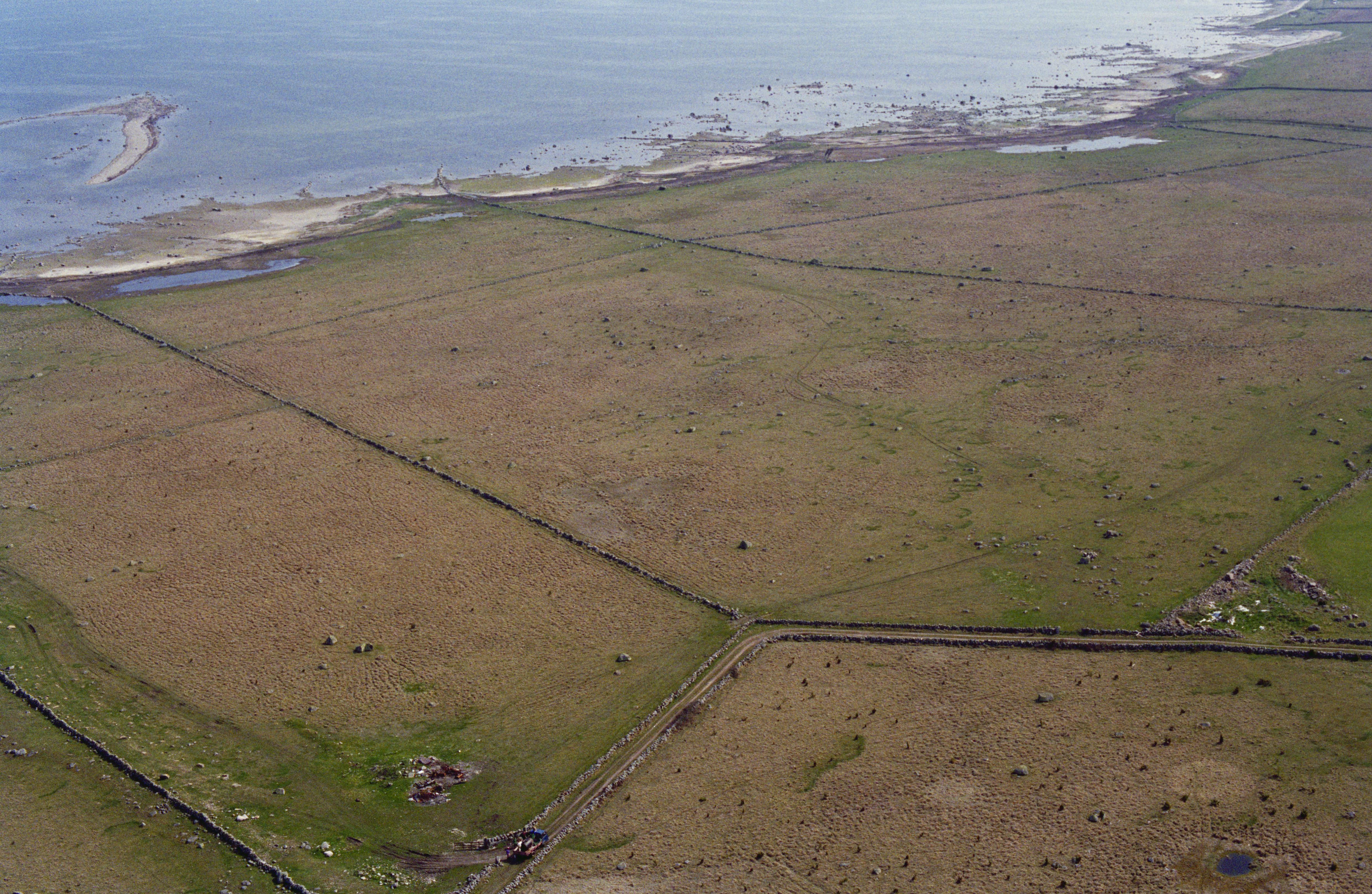 Beskrivning: Jättegravarna. Husgrunder RAÄnr Löt 18:1, hägnad Löt 18:2, stensättningar Löt 22:1-3, röse Löt 21:1. I bildens övre del till vänster skären Bådarna. Bilden är tagen mot (väderstreck): SO