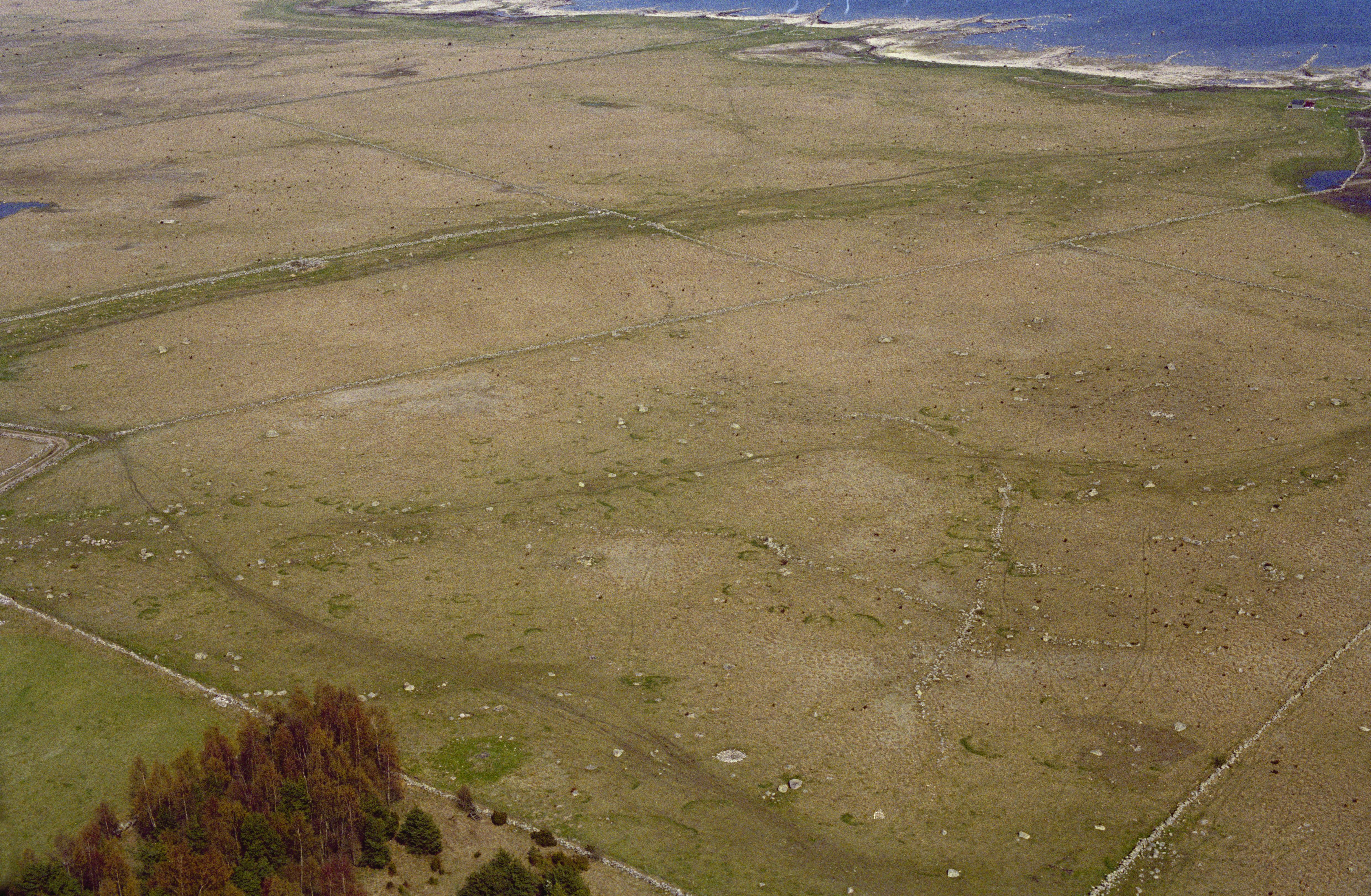 Beskrivning: Jättegravarna, södra delen. Hägnadssystem och husgrund RAÄnr Löt 18:1 och 18:2. Bilden är tagen mot (väderstreck): NO