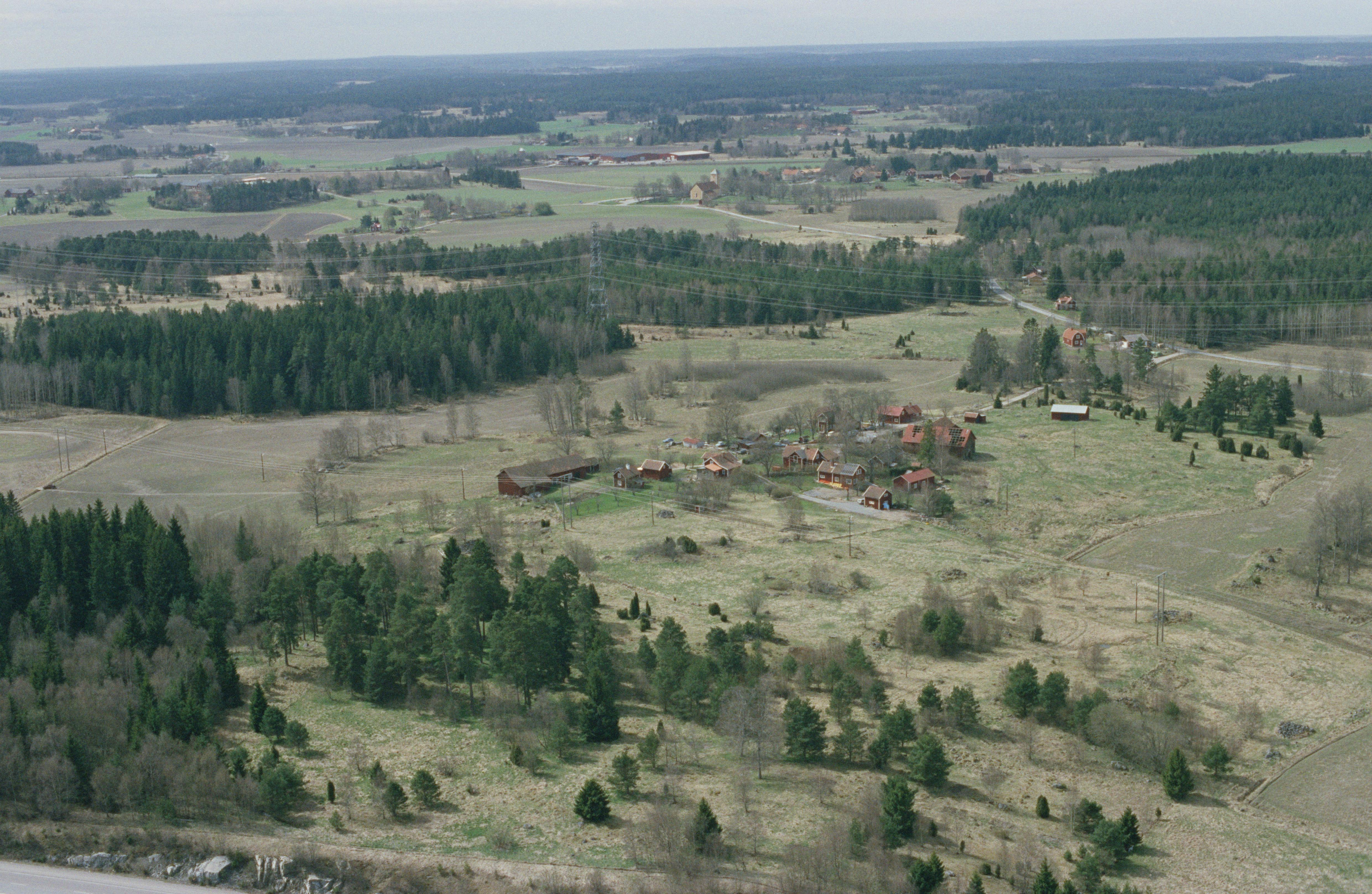 Beskrivning: Rickebyåns dalgång vid Åslunda by innan bygge av järnväg (Arlandabanan) sydost om Svartsjön. Längs bildens mitt bo- och gravplats RAÄnr Odensala 6:1, 402:1-2, 11:1, och 13:1, boplats Odensala 489:1, m.fl. Bilden är tagen mot (väderstreck): VSV
