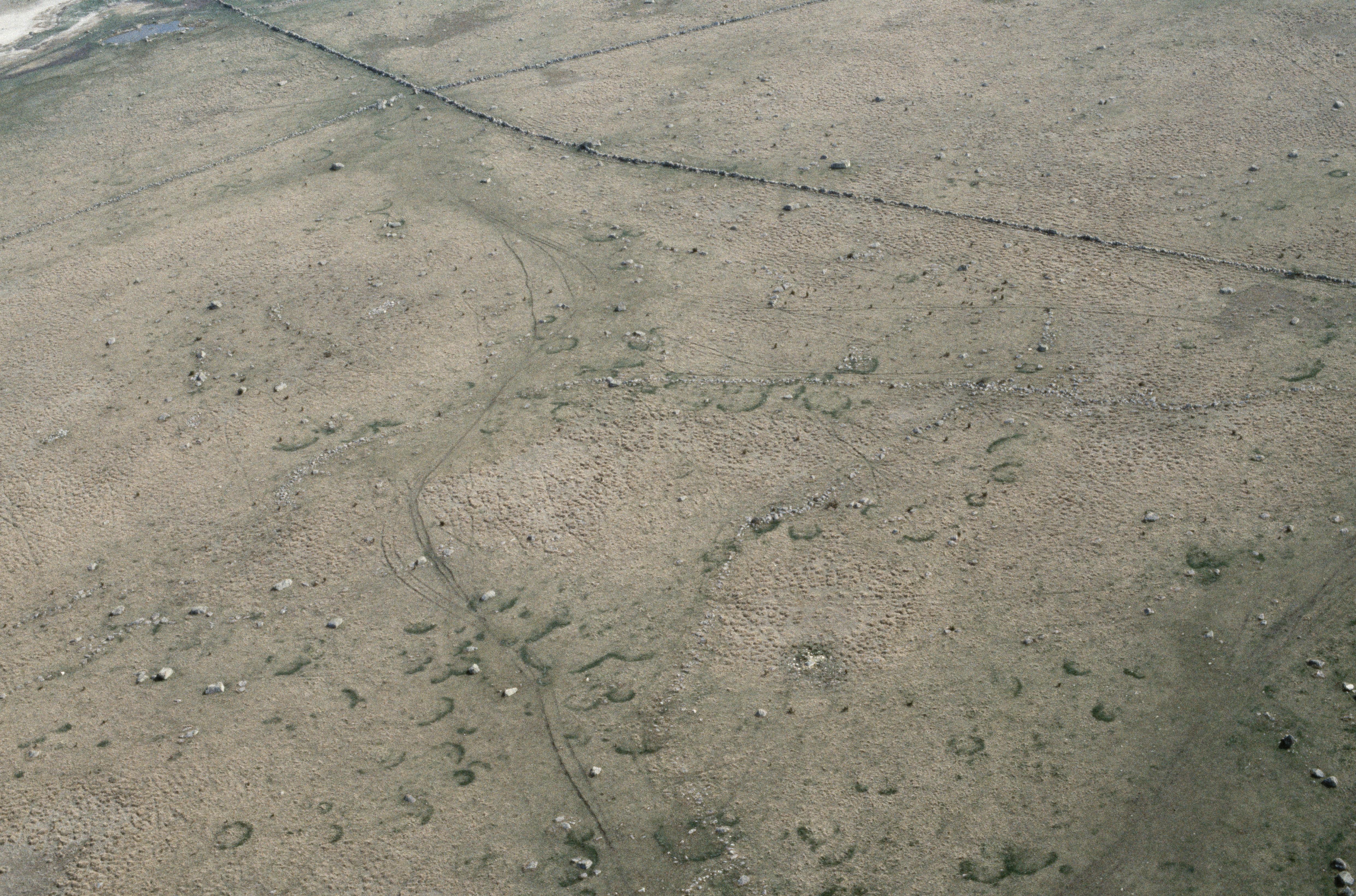 Beskrivning: Jättegravarna, södra delen. Hägnadssystem och husgrund RAÄnr Löt 18:2. Bilden är tagen mot (väderstreck): SO