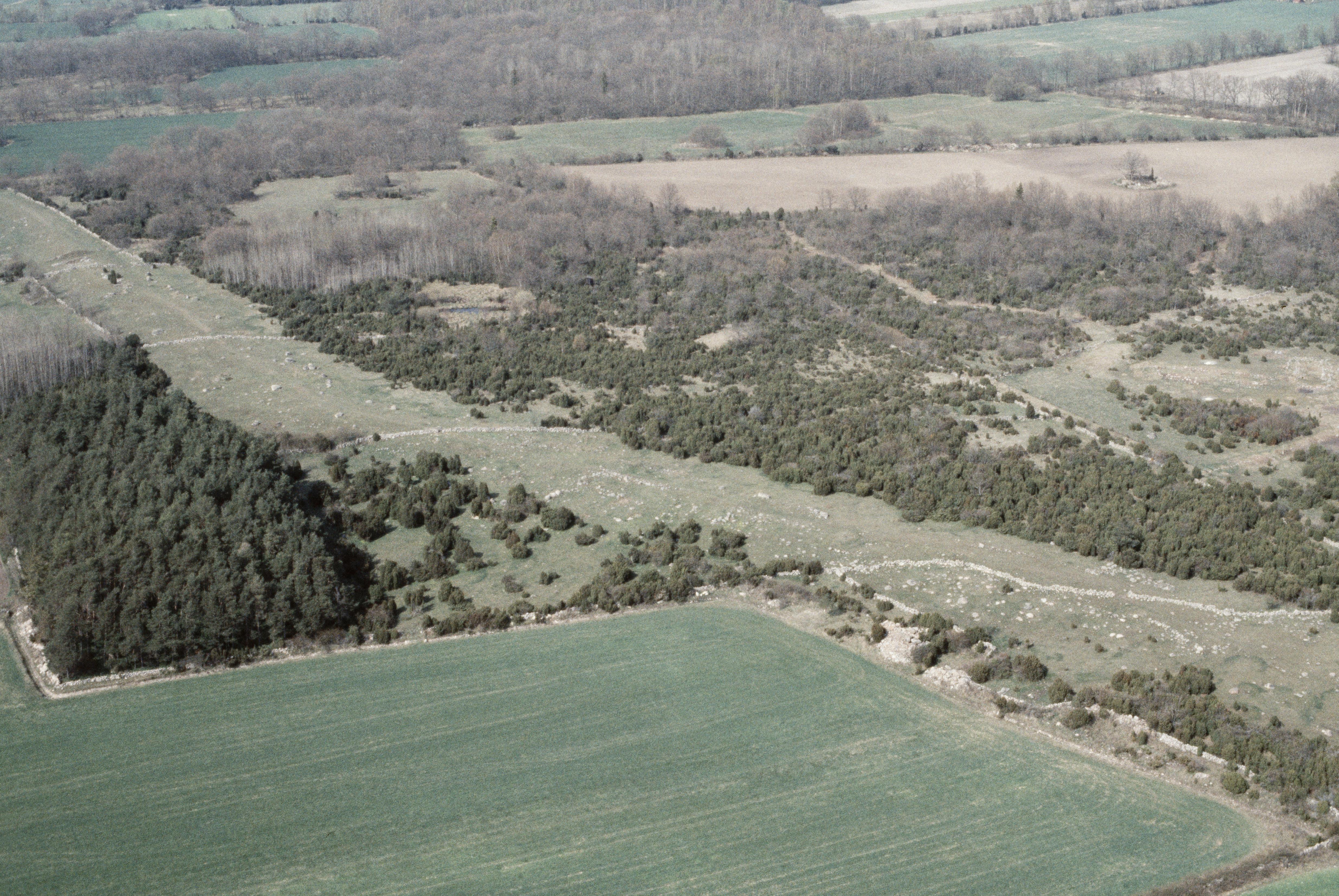 Beskrivning: Fornlämningsområde i Södra Greda. Husgrunder RAÄnr Föra 14:1, 15:1-4, 16:1, 19:1-3, stensträngar RAÄnr Föra 13:1-3 m.fl. Bilden är tagen mot (väderstreck): NNO