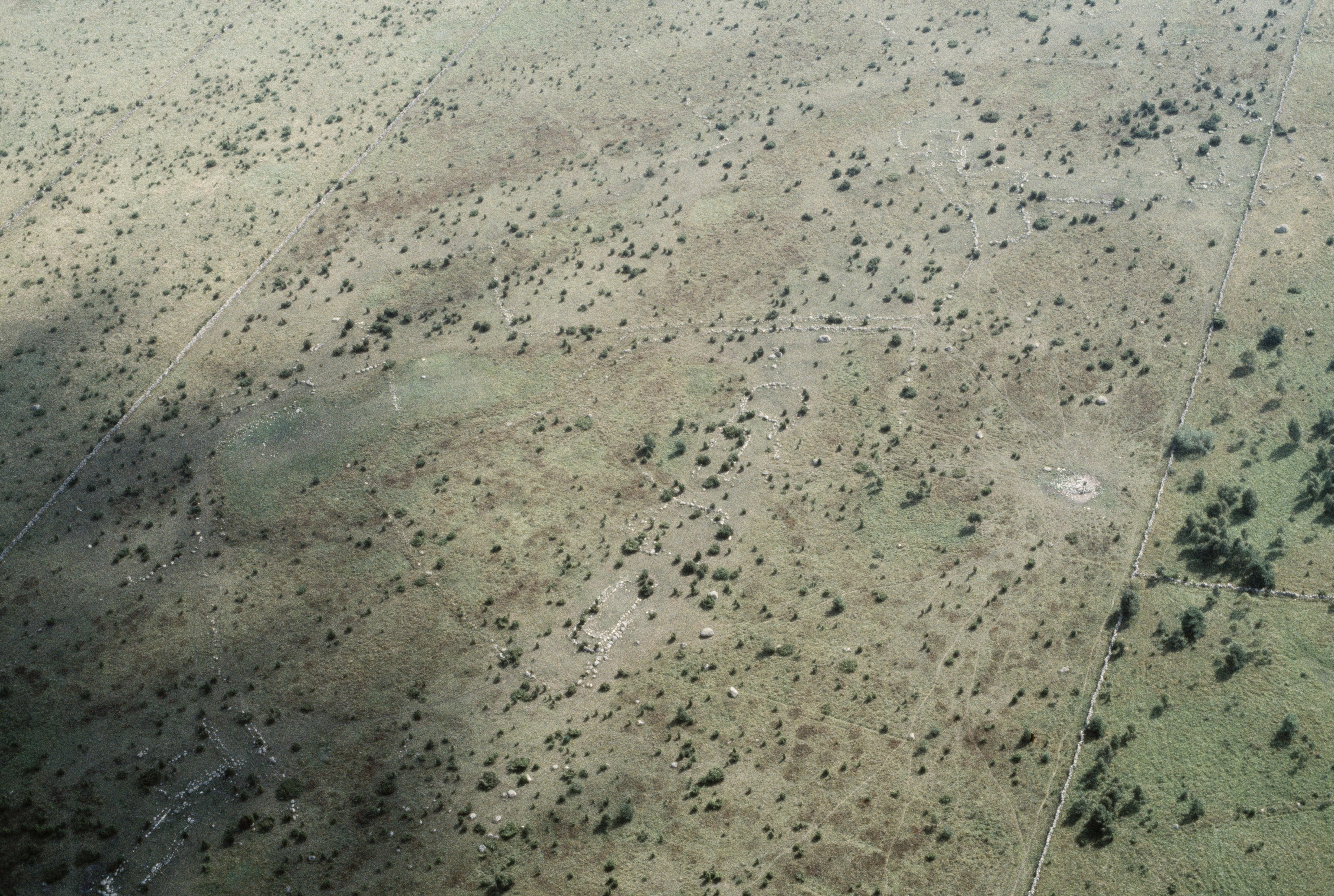 Beskrivning: Jättegravarna vid Slatekärr. Hägnadssystem RAÄnr Löt 65:12 och husgrunder RAÄnr Löt 65:4, 65:5, m.fl. Bilden är tagen mot (väderstreck): SO