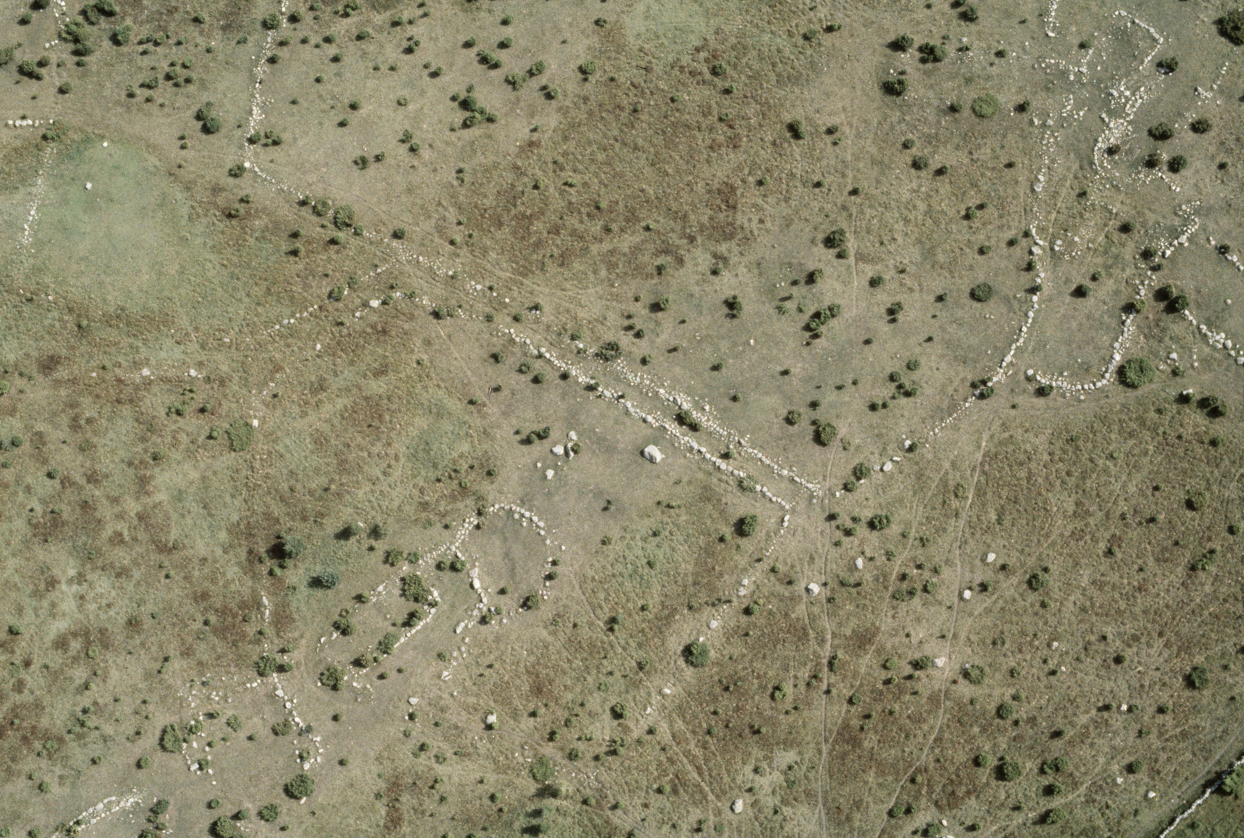 Beskrivning: Jättegravarna vid Slatekärr. Hägnadssystem RAÄnr Löt 65:12 och husgrunder RAÄnr Löt 65:5 (till vänster) och 65:6 m.fl. Bilden är tagen mot (väderstreck): NO