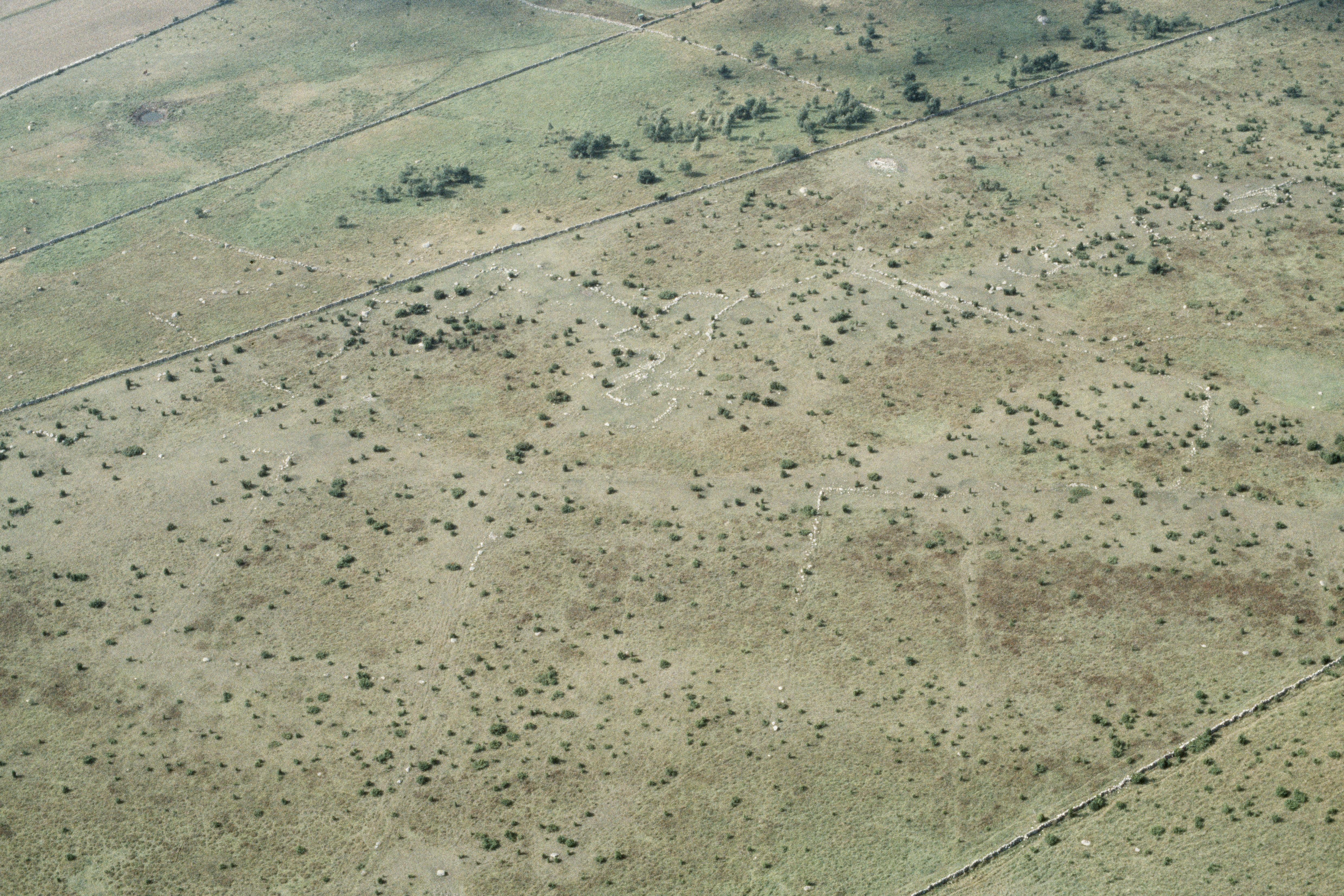 Beskrivning: Jättegravarna vid Slatekärr. Hägnadssystem RAÄnr Löt 65:12 och husgrunder RAÄnr Löt 65:5, 65:6, 65:8, 65:9 m.fl. Bilden är tagen mot (väderstreck): VSV